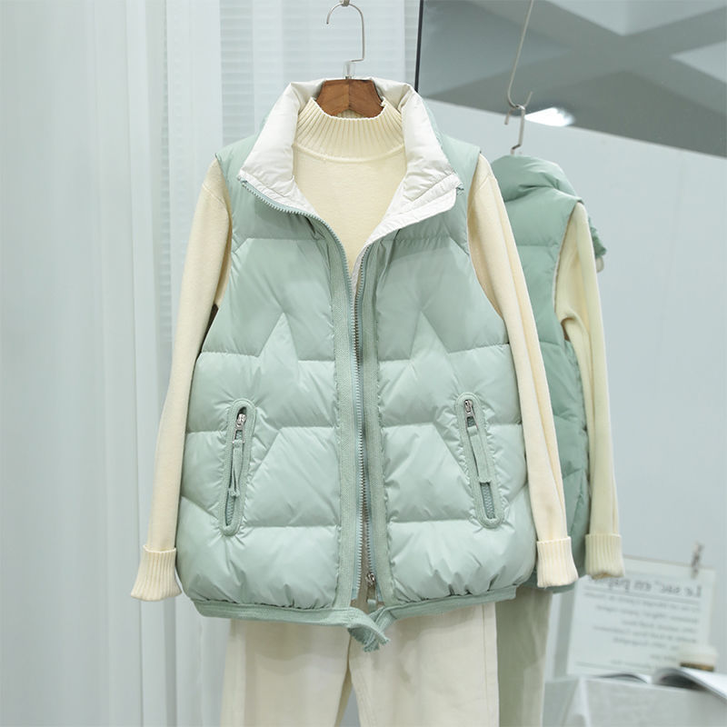 다운 재킷 여성 짧은 조끼 새로운 한국 스타일 수직 칼라 슬림 핏 패션 웨이스트 코트 다운 조끼 트렌디