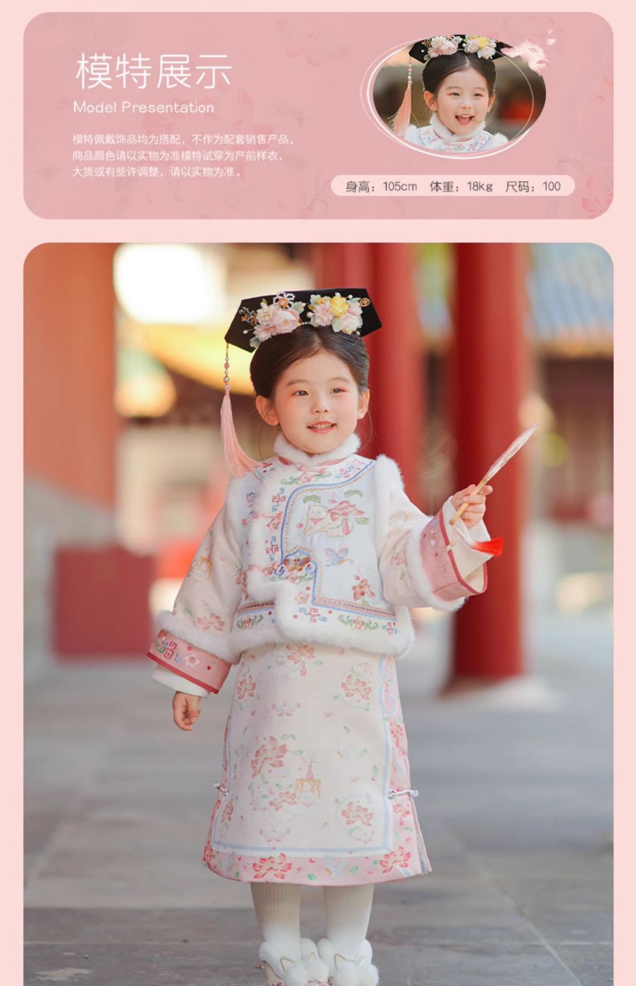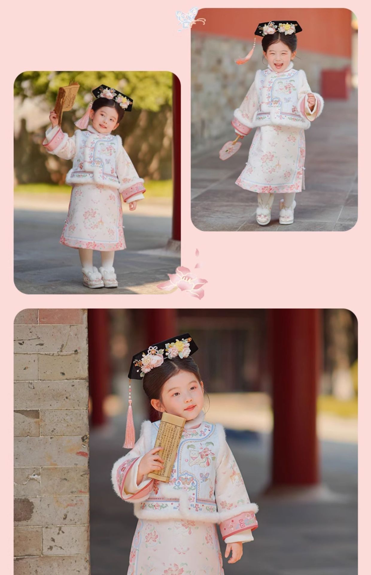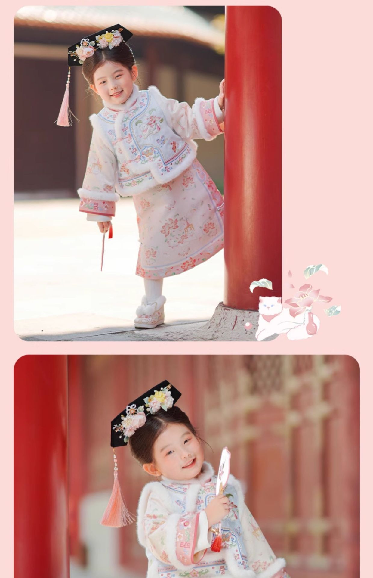 오늘 Xi Gu Xi Gege 의류 소녀 고대 의상 겨울 2024 어린이 한푸 자금성 두꺼운 청나라 어린 소녀 겨울 의상