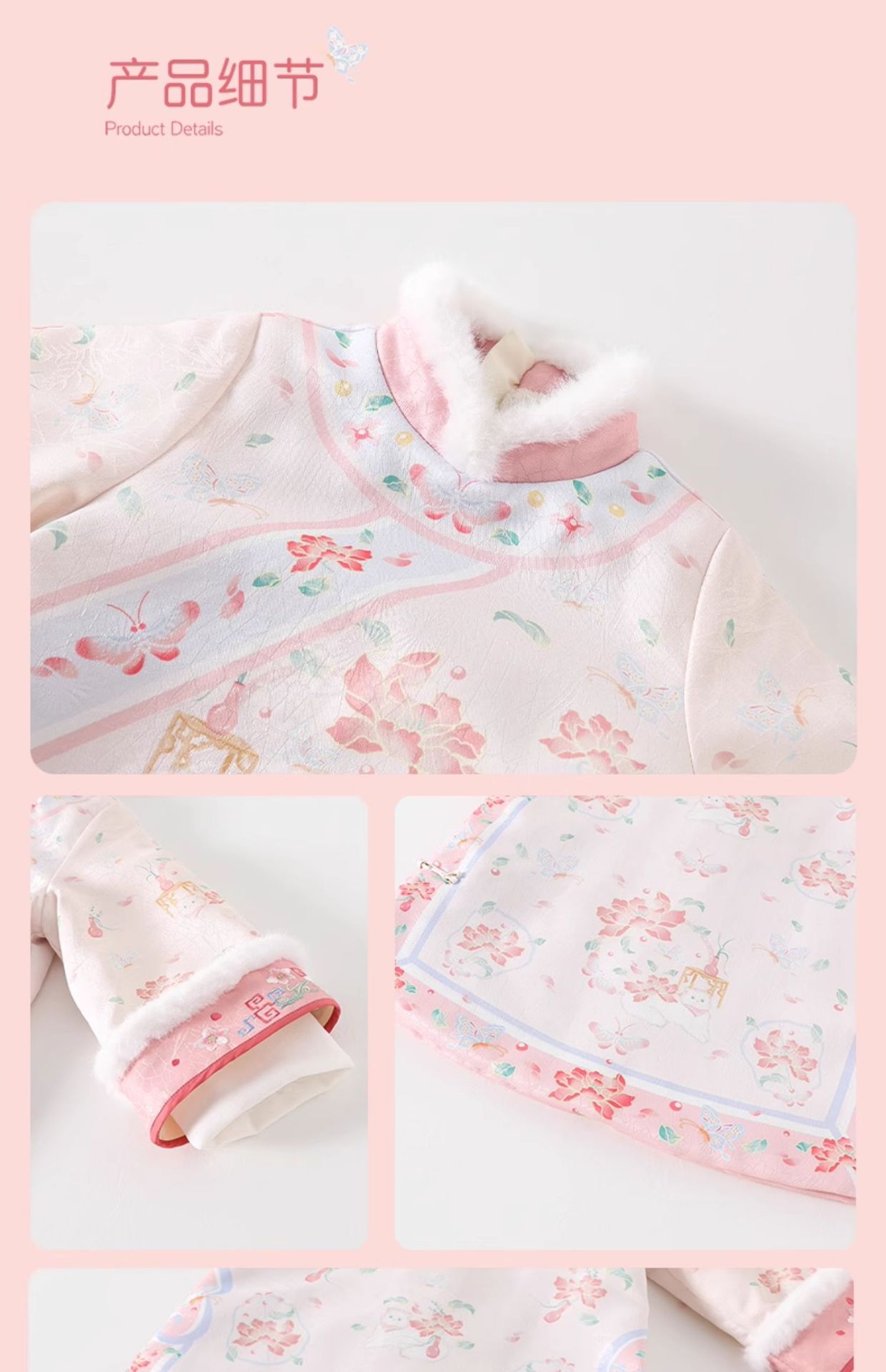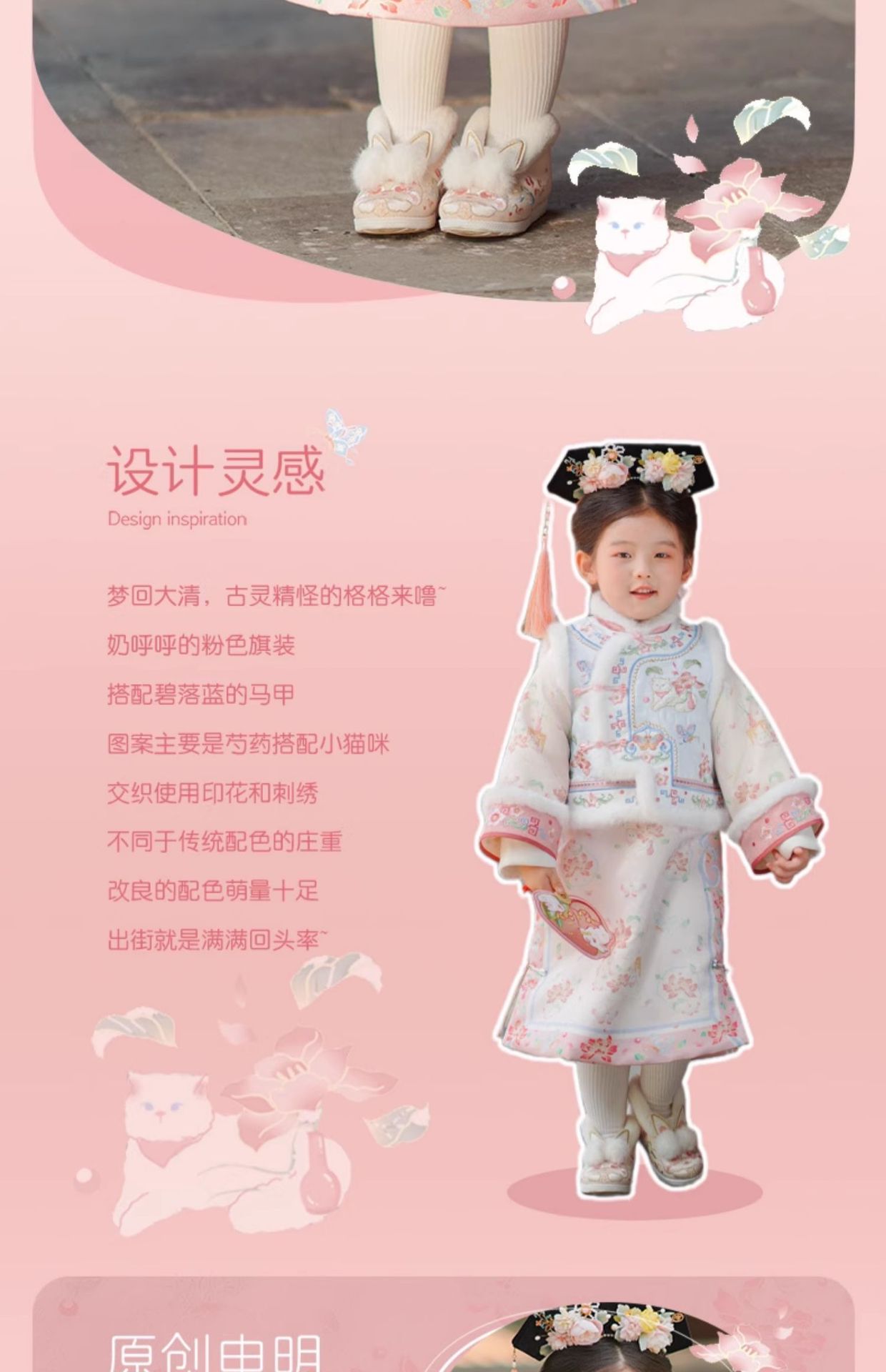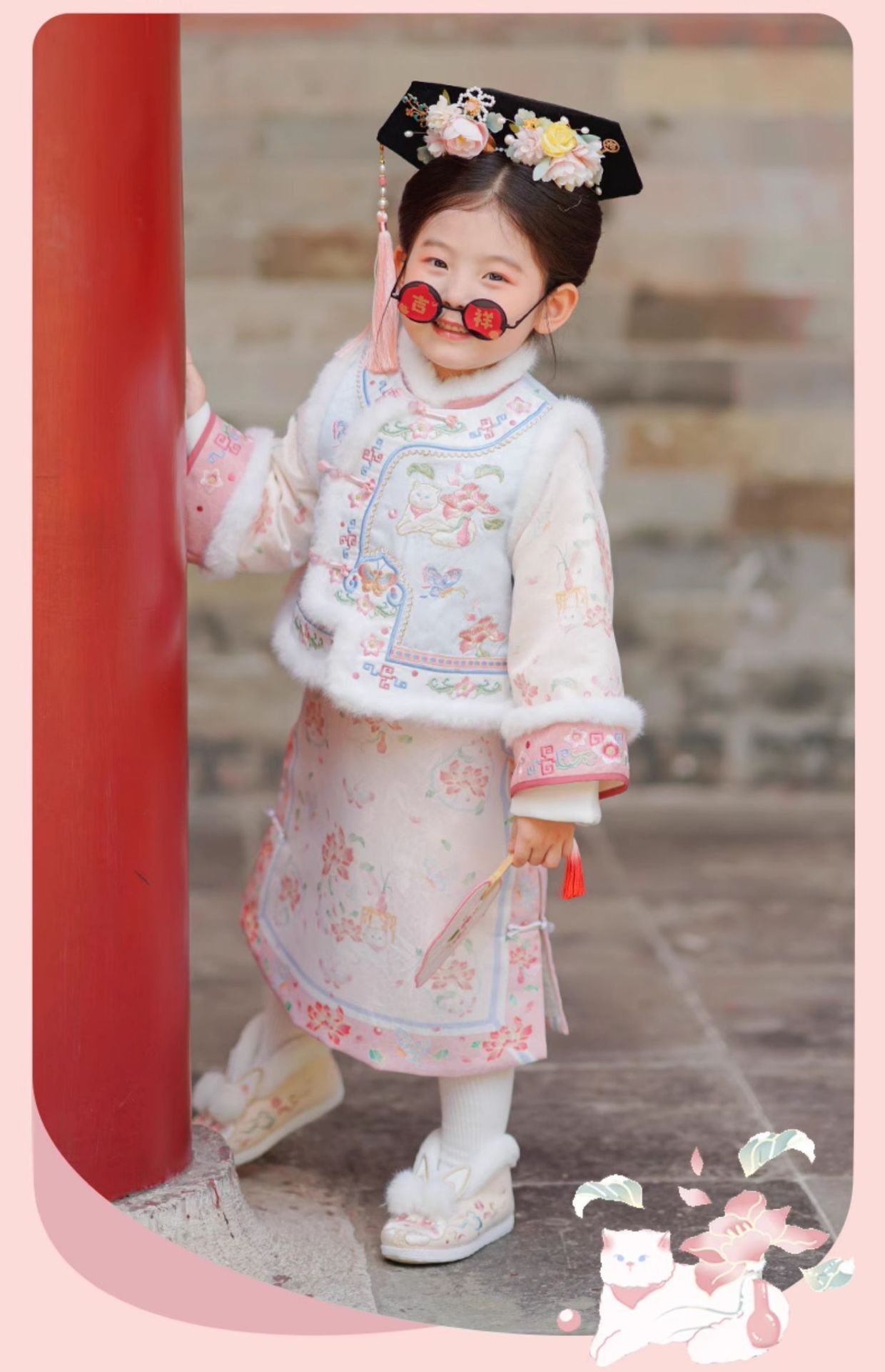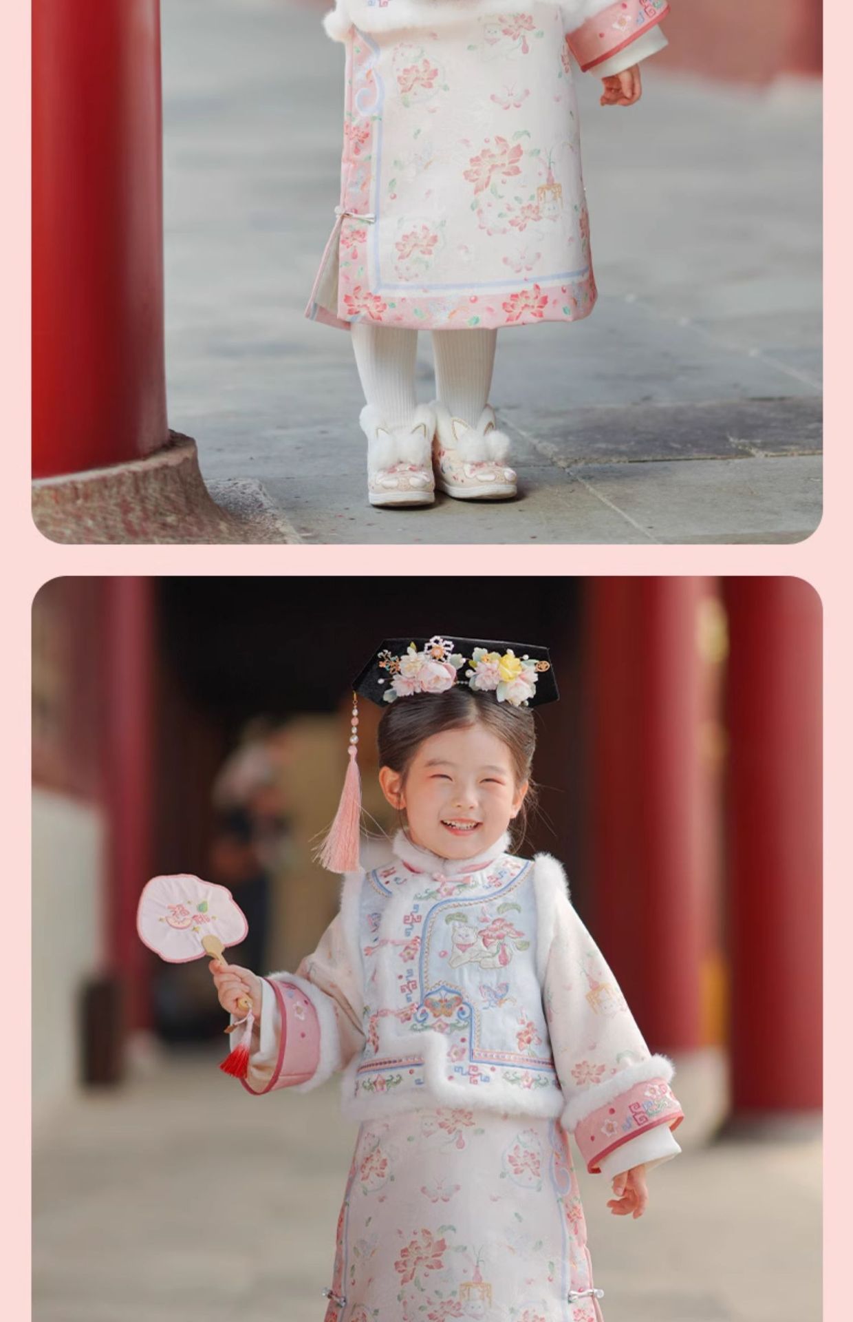 오늘 Xi Gu Xi Gege 의류 소녀 고대 의상 겨울 2024 어린이 한푸 자금성 두꺼운 청나라 어린 소녀 겨울 의상