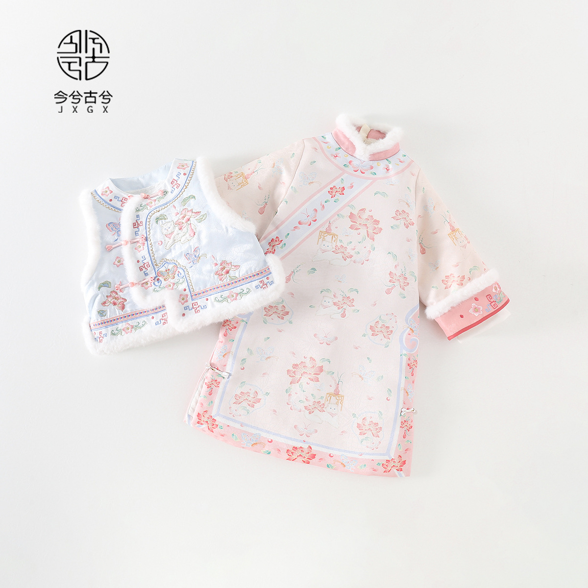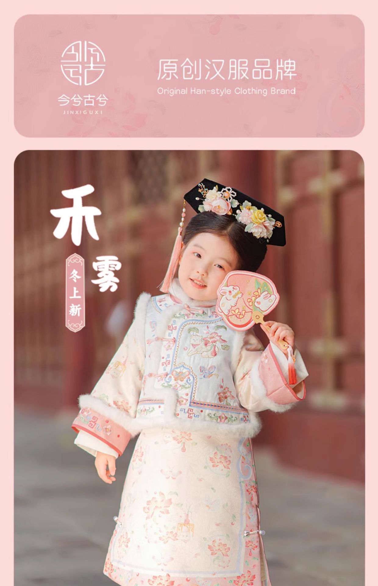 오늘 Xi Gu Xi Gege 의류 소녀 고대 의상 겨울 2024 어린이 한푸 자금성 두꺼운 청나라 어린 소녀 겨울 의상스토어 가기
