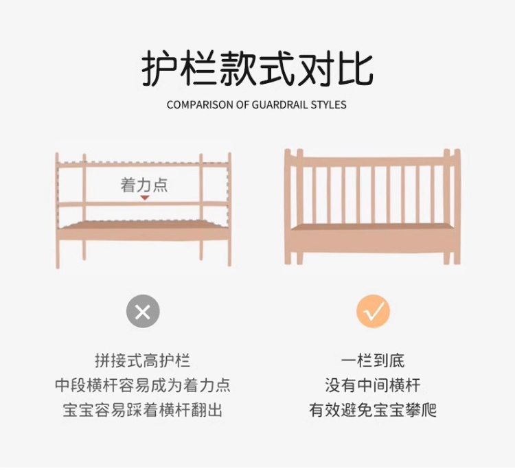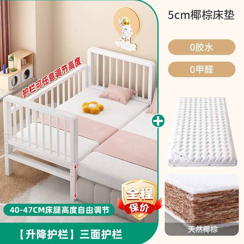 • 【측면 높이 조절】 3면 안전 가드 + 5cm 야자매트리스 (침대 다리 높이 조절 가능)