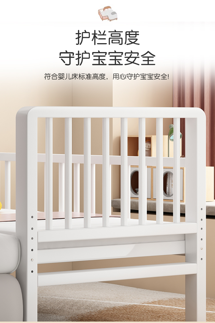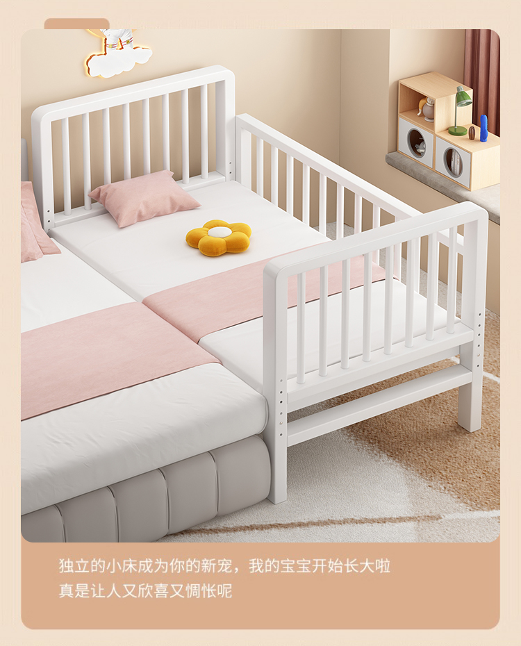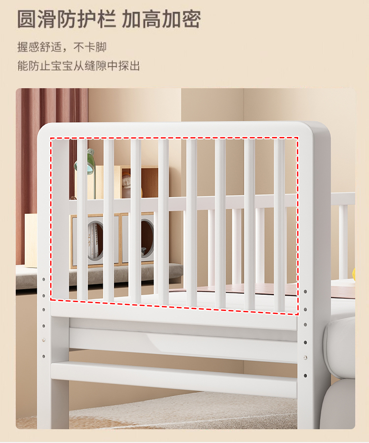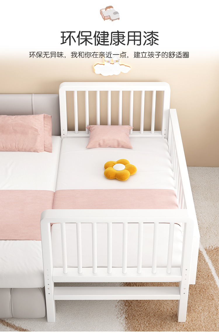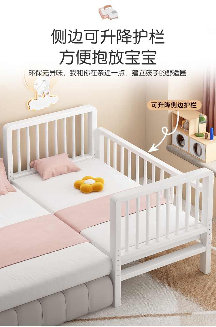 • 【측면 승강】 3면 안전 가드 + 8cm 라텍스 매트리스 (침대 다리 높이 조절 가능)