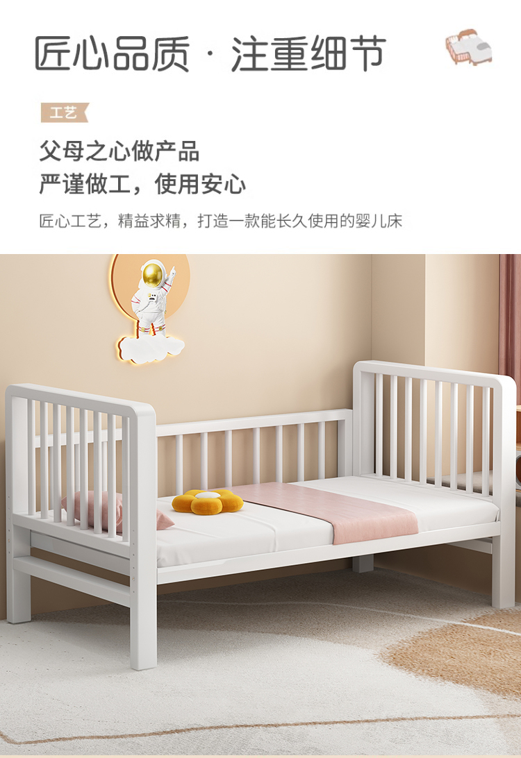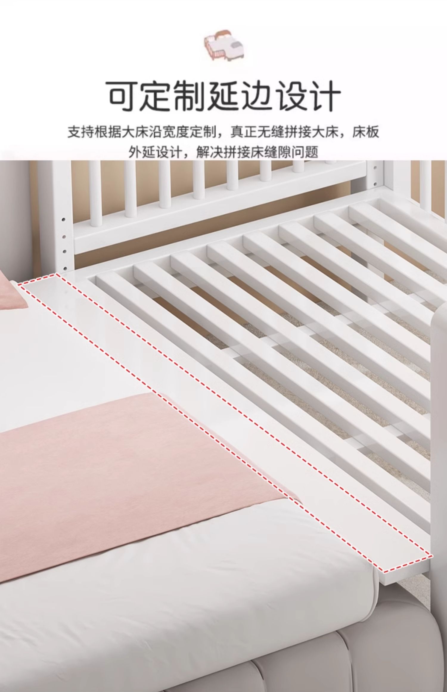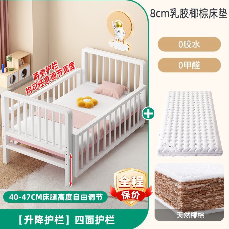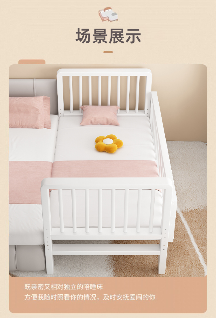 • 【측면 승강】 3면 안전 가드 + 8cm 라텍스 매트리스 (침대 다리 높이 조절 가능)
