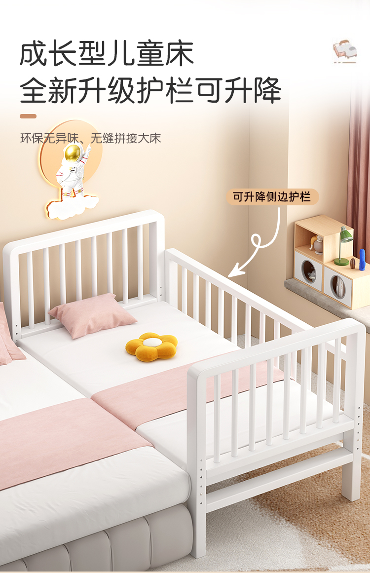 • 【측면 높이 조절】 3면 안전 가드 (침대 다리 높이 조절 가능)