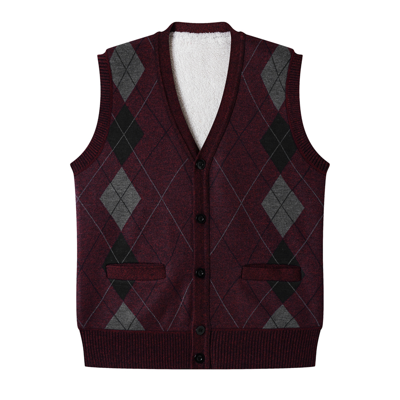 겨울 조끼 남자 아빠 버튼 카디건 조끼 중년 및 노인 따뜻한 조끼 기모 두꺼운 스웨터