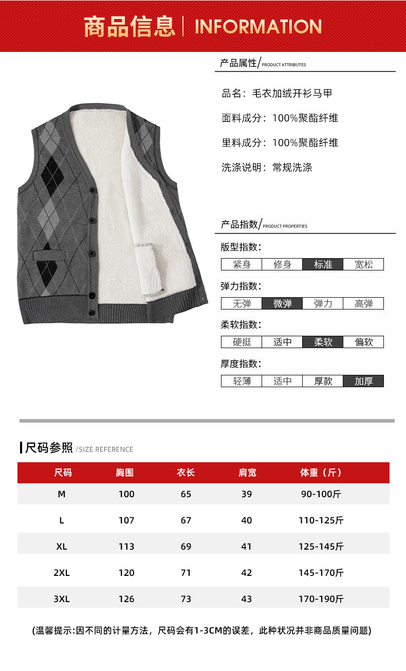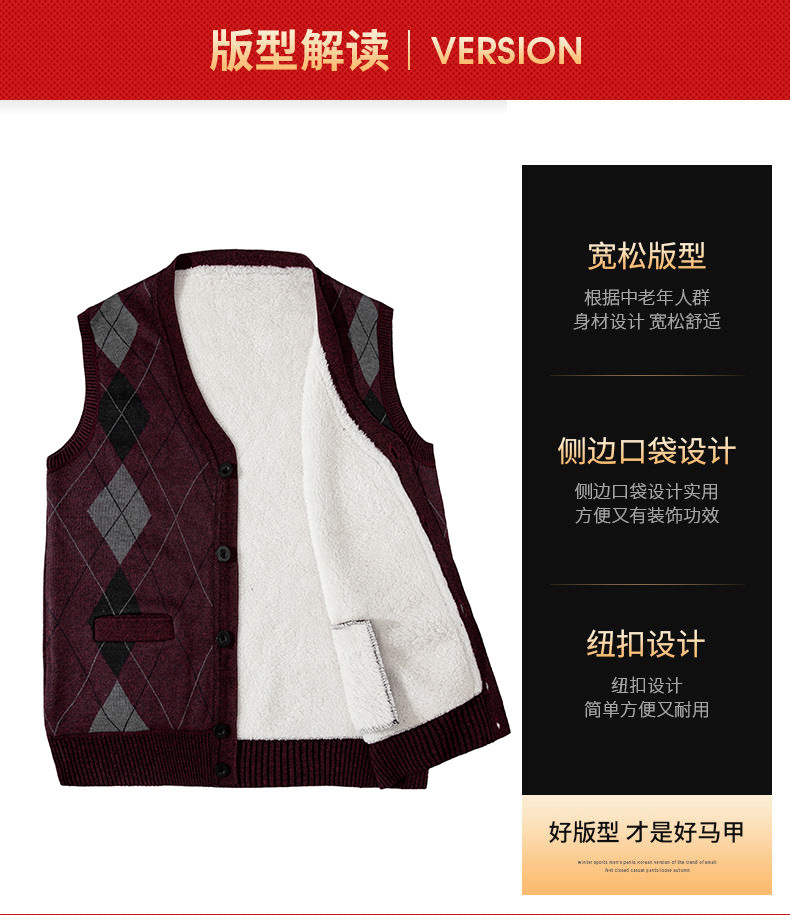 겨울 조끼 남자 아빠 버튼 카디건 조끼 중년 및 노인 따뜻한 조끼 기모 두꺼운 스웨터스토어 가기