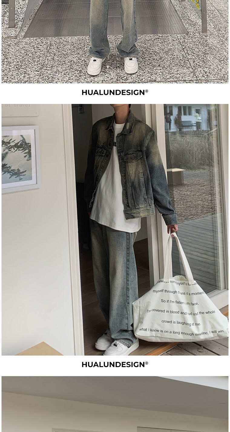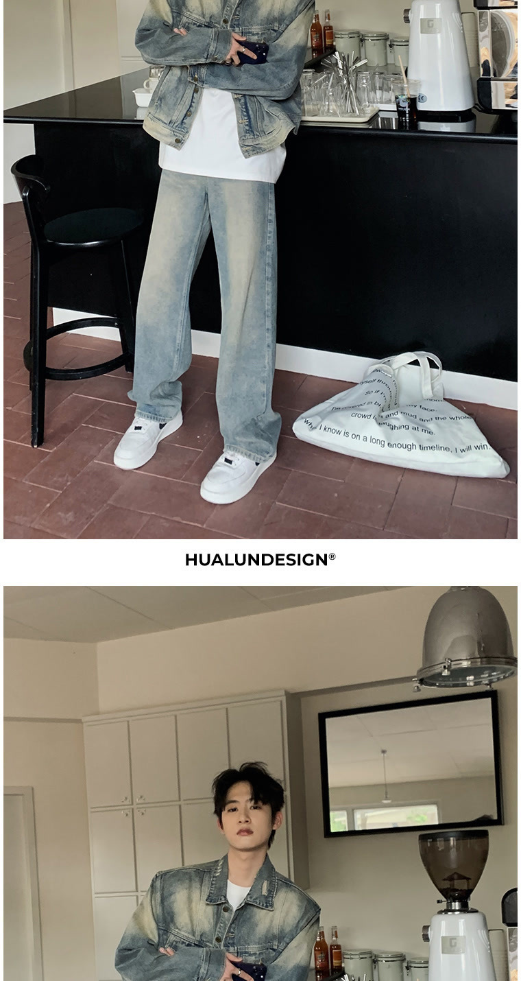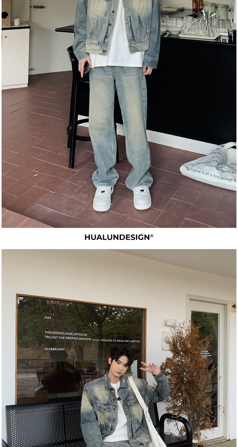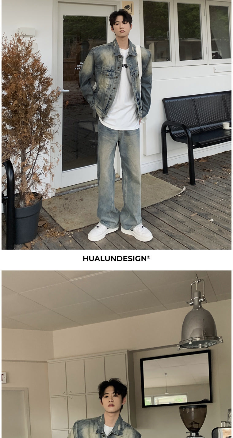 가을 조수 브랜드 복고풍 데님 세트 남성용 러피 잘 생긴 빈티지 홍콩 스타일 남성 재킷 코트 조수 세트스토어 가기