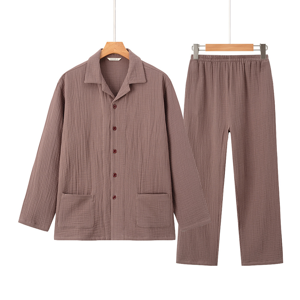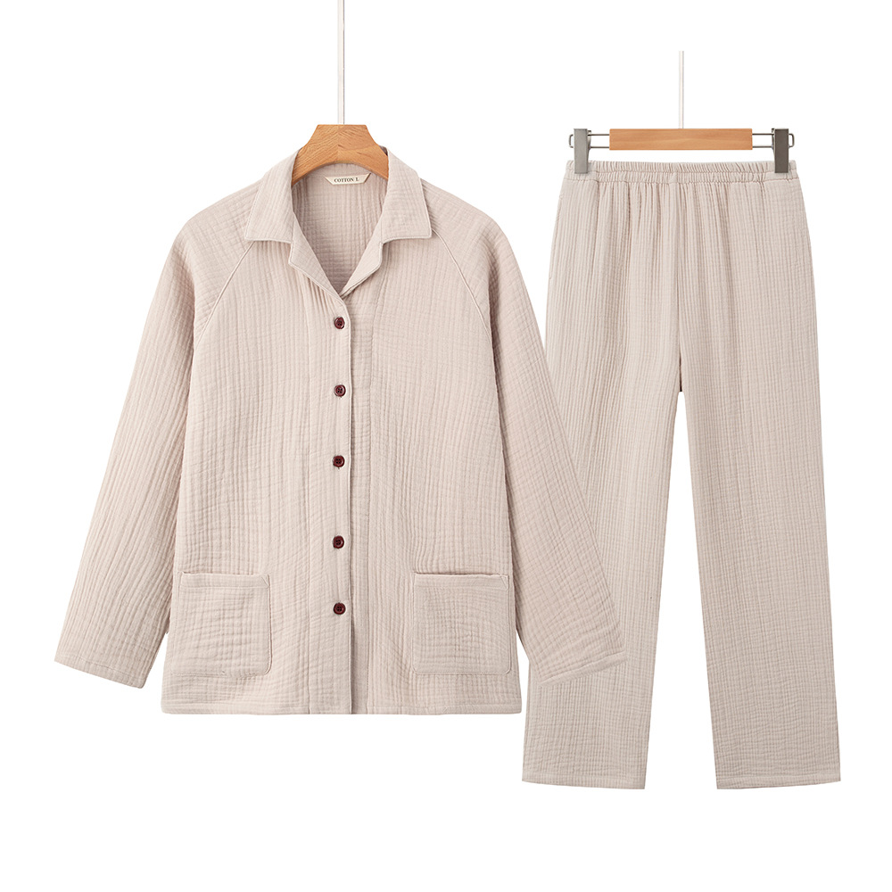 빅사이즈 순면 4겹 거즈 홈웨어 긴팔 순면 보온 무봉제 잠옷 특대형 거즈 롱 세트