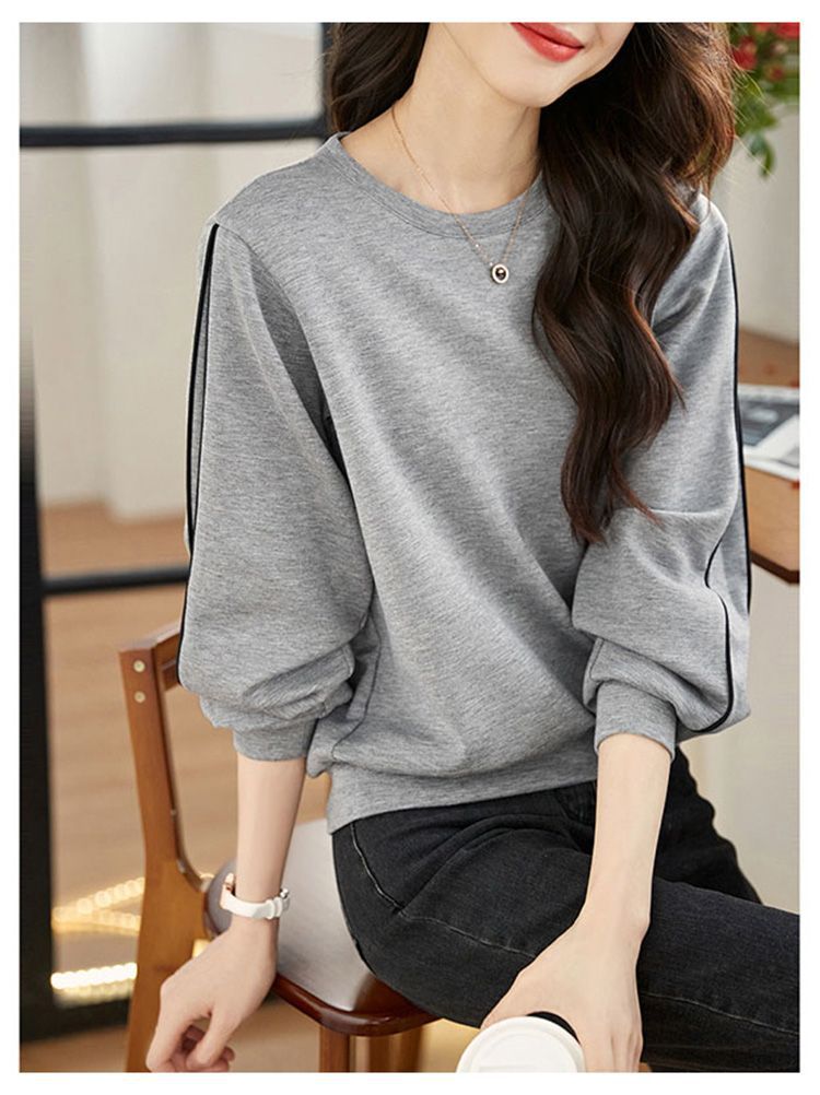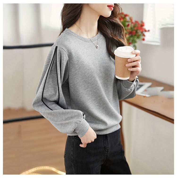 여성용 디자인 스웨트 셔츠 루즈한 2025 봄, 가을 한국 스타일 새로운 대비 색상 틈새 바닥 셔츠 질감 긴팔 탑스토어 가기