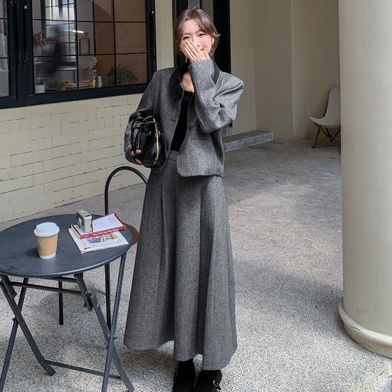 원래 품질 모직 원피스 새로운 스타일 우아한 짧은 재킷 여성 스커트 투피스 세트스토어 가기