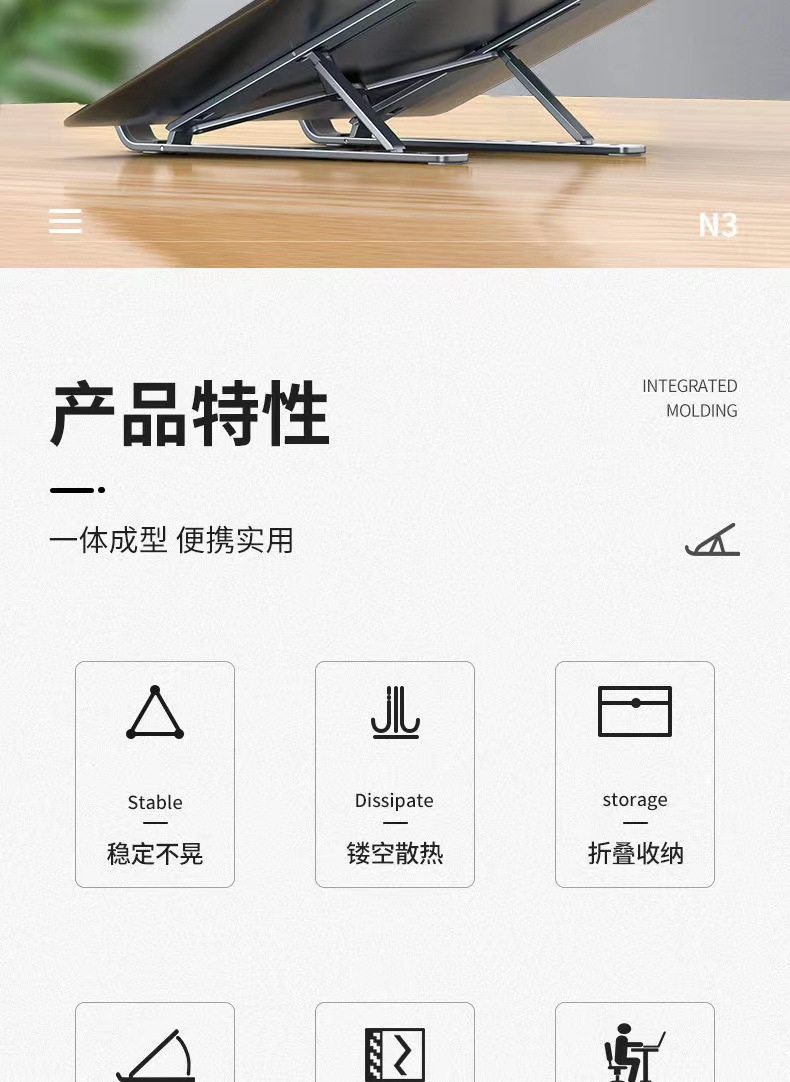 국경 간 노트북 브래킷 N3 접이식 냉각 기본 태블릿 데스크탑 휴대용 브래킷 도매스토어 가기