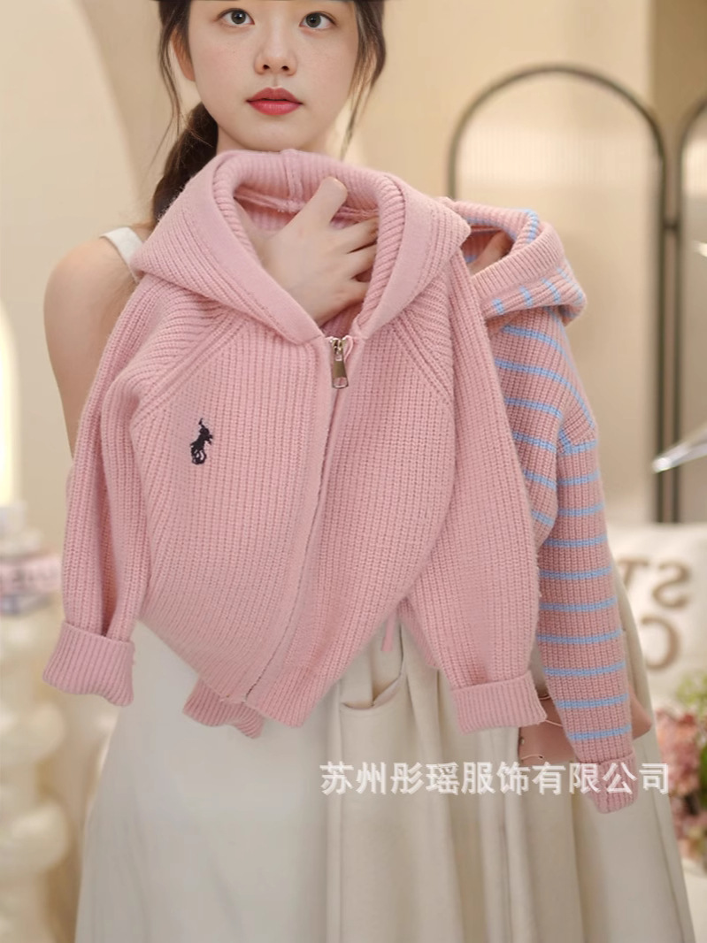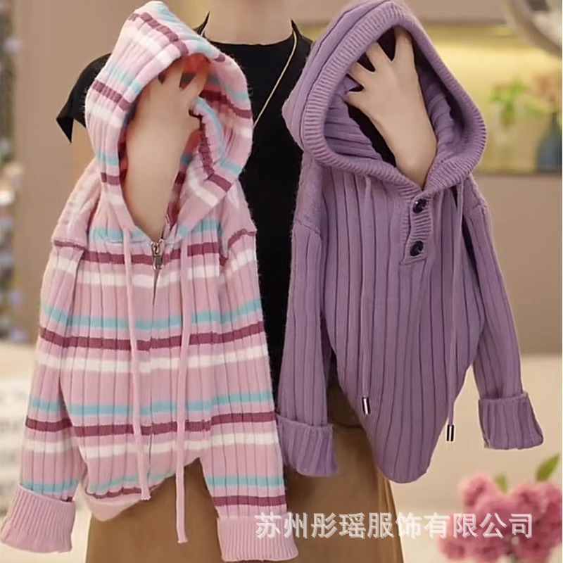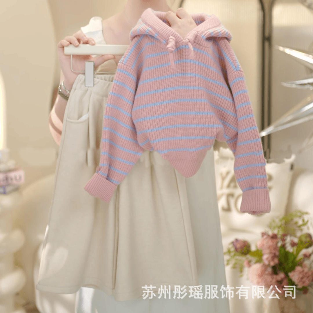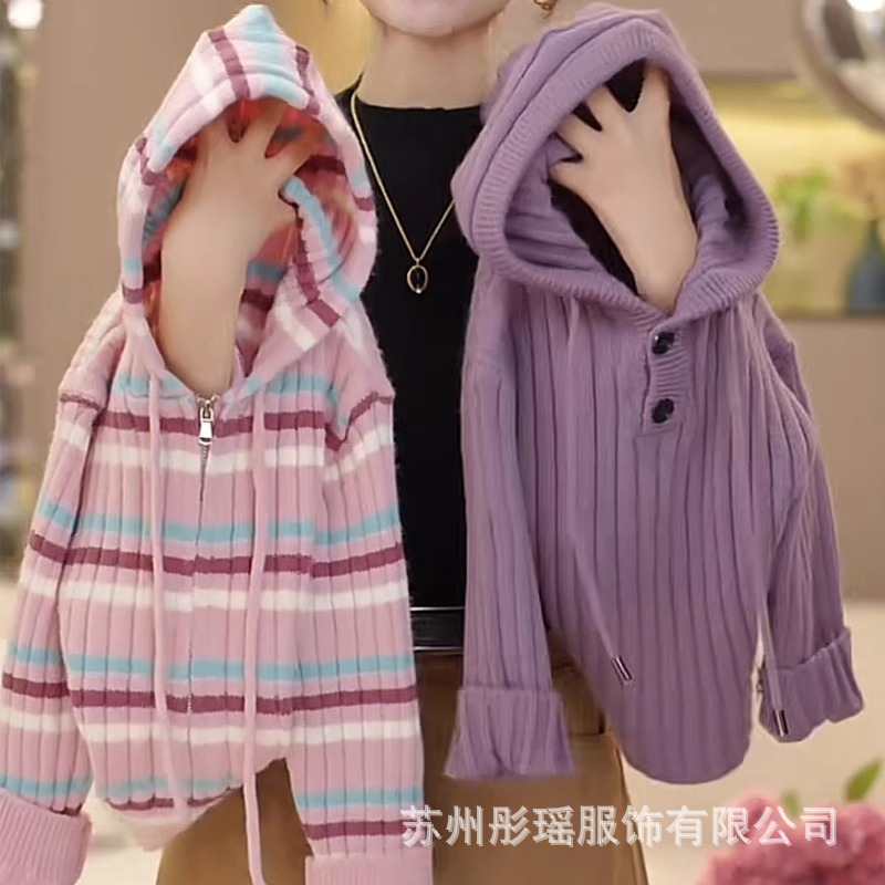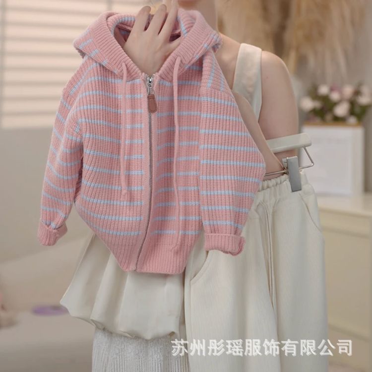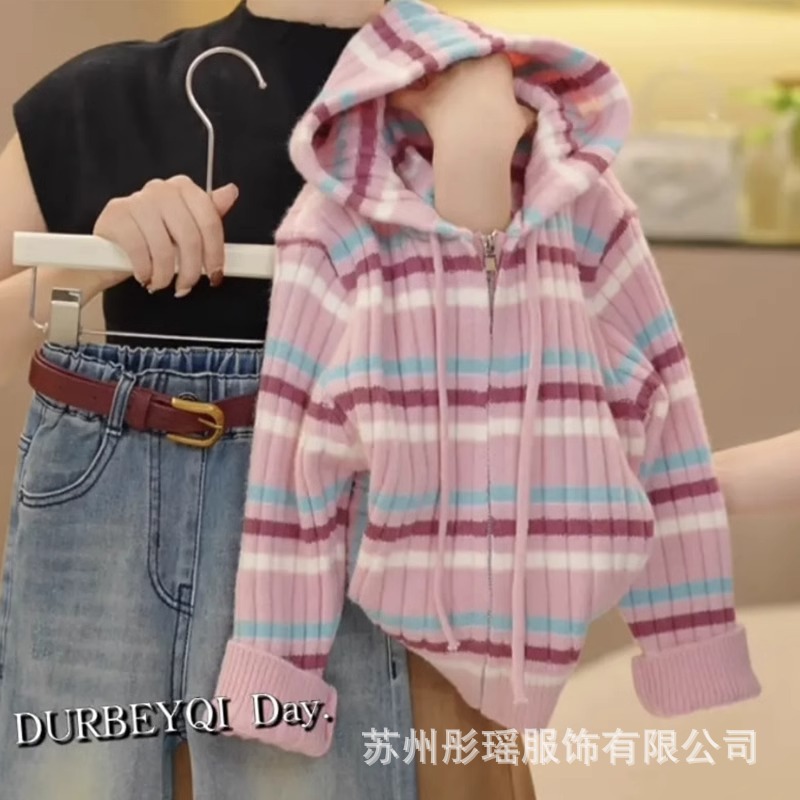 여아 후드 스웨터 2025 봄, 가을 스타일 중형 및 대형 아동용 스웨터 긴팔 풀오버 카디건 지퍼 탑 재킷 유행스토어 가기