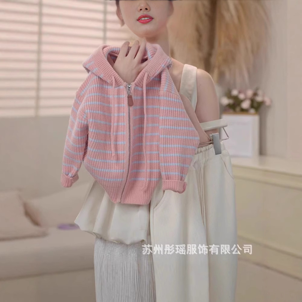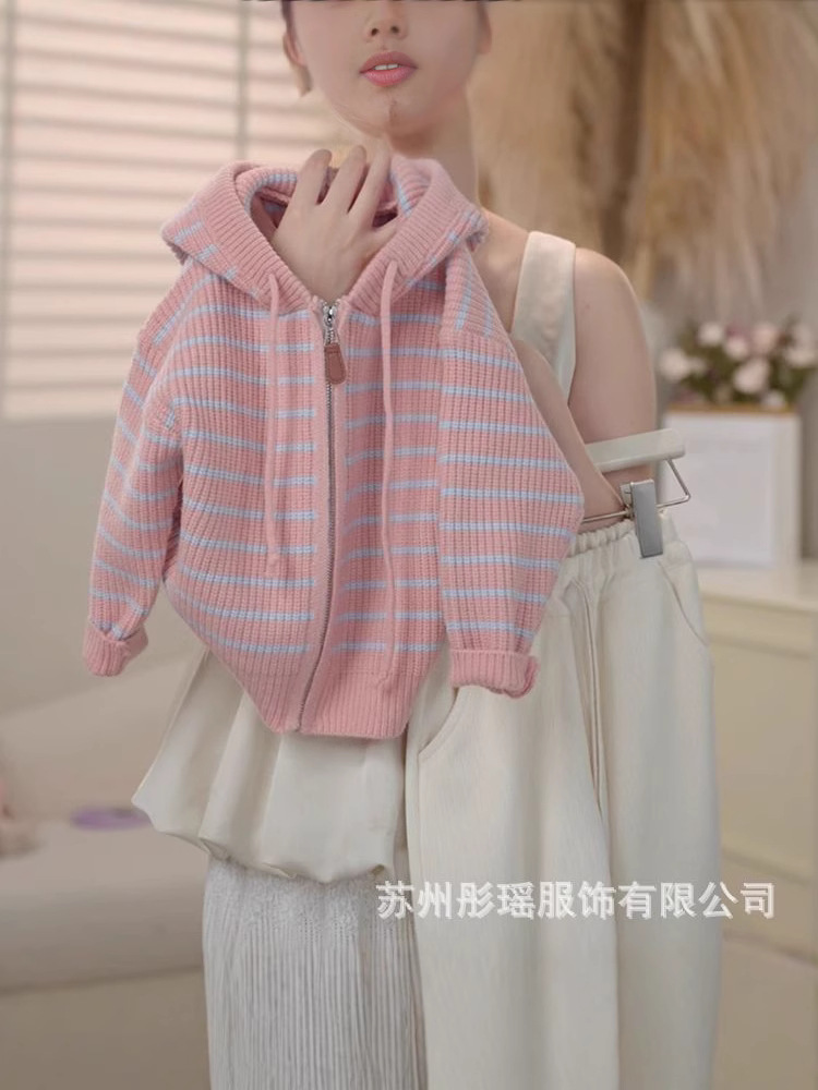 • 스트라이프 핑크 지퍼 스웨터 [단품]