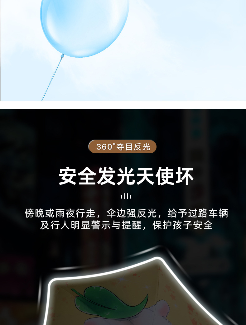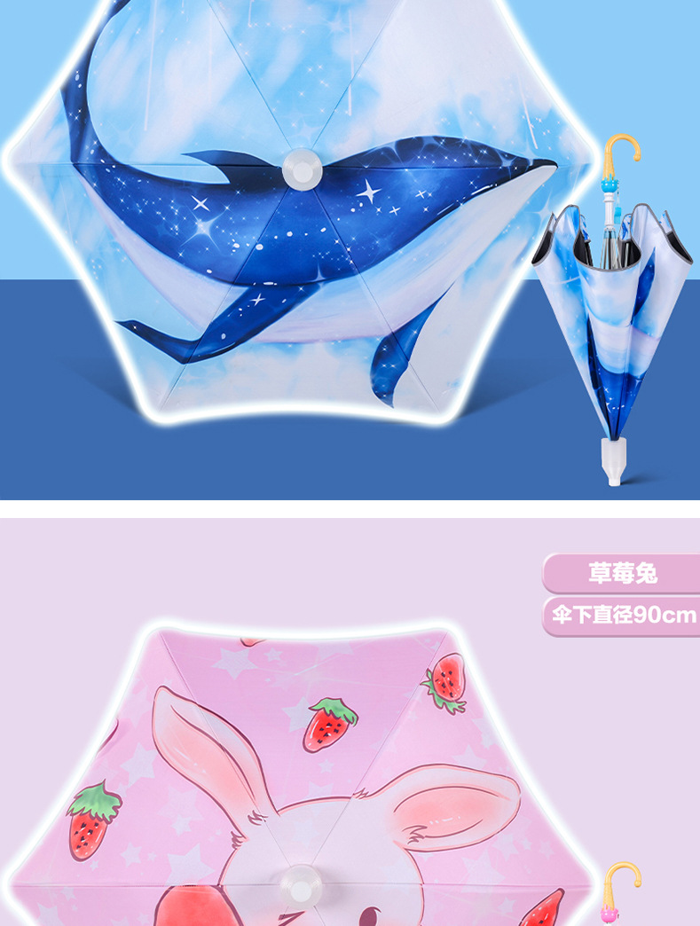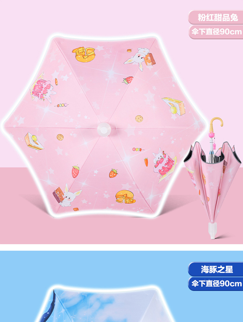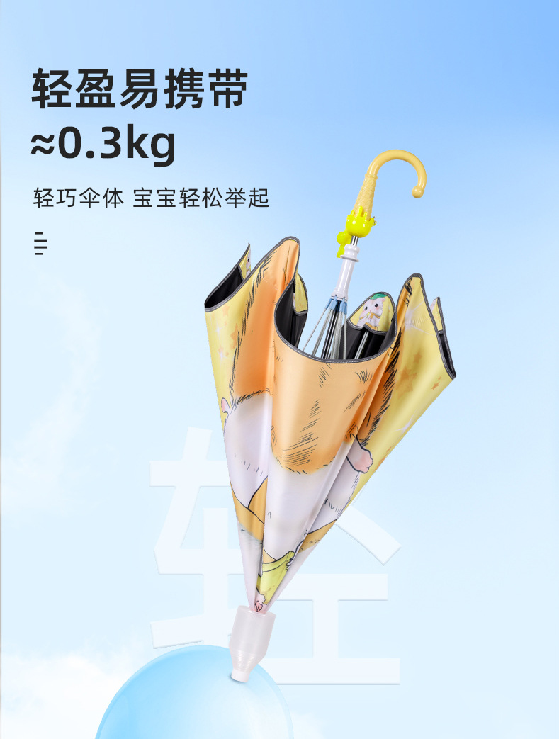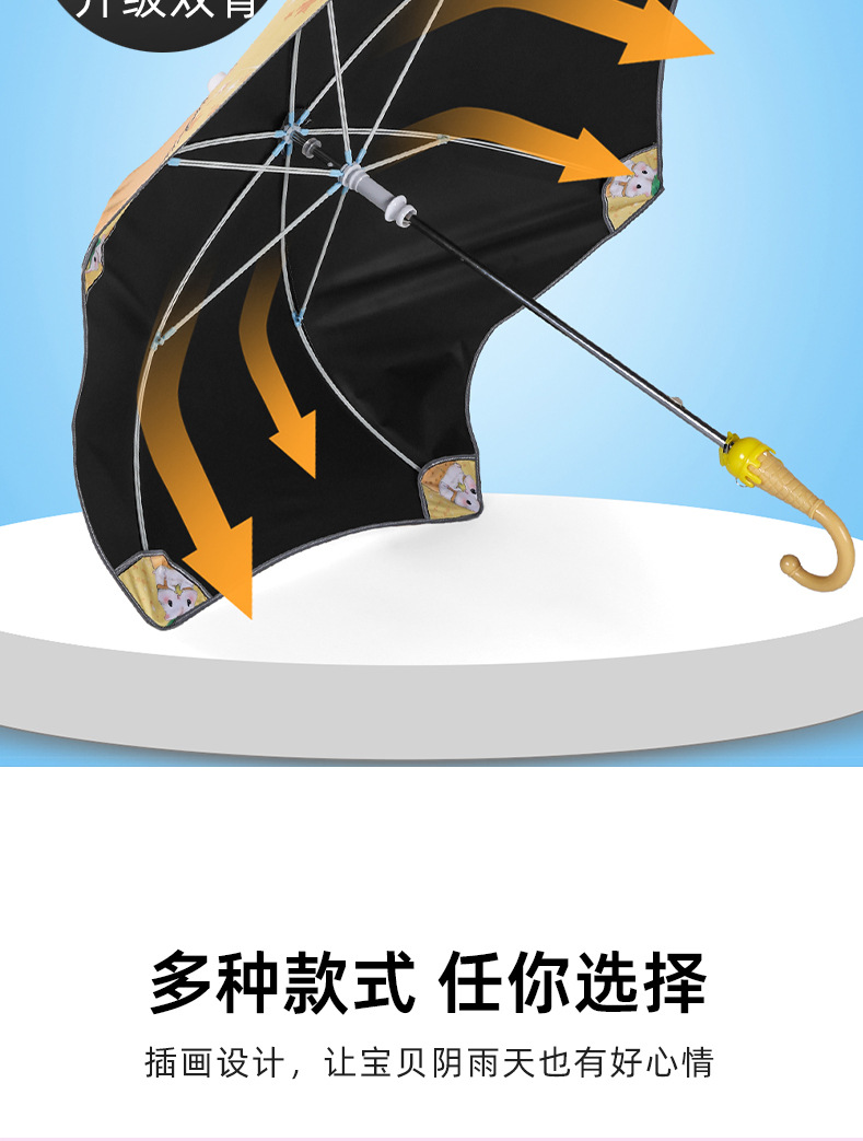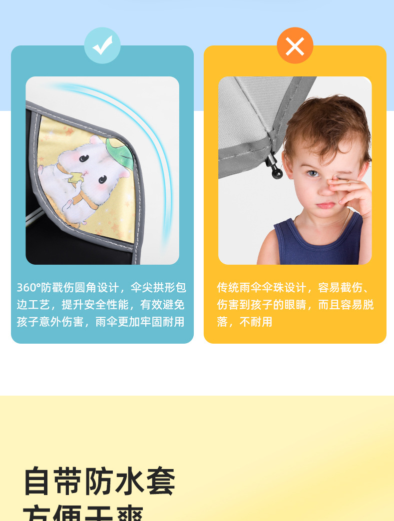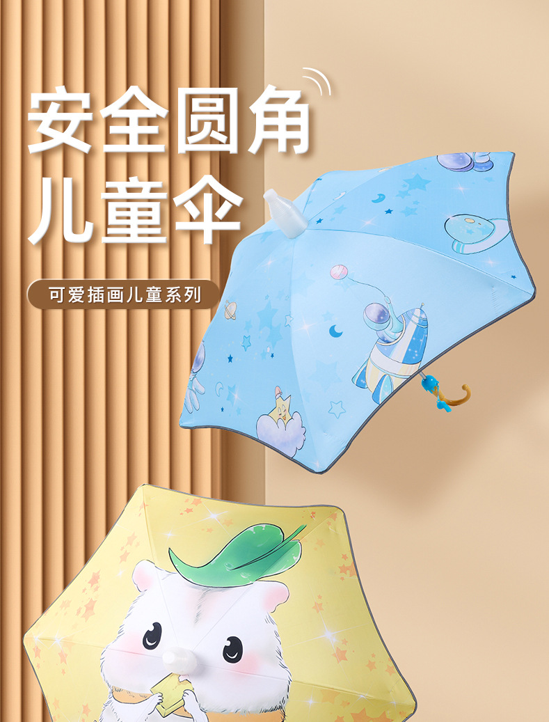 어린이용 둥근 모서리 안전 우산, 유치원생 만화 우산, 반사 스트립, 직선형 손잡이, 큰 어린이용 우산, 자외선 차단 UPF40+스토어 가기