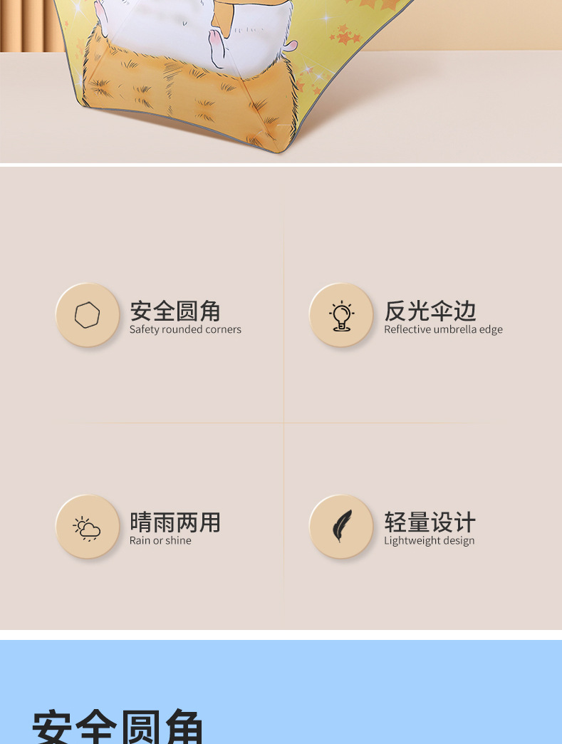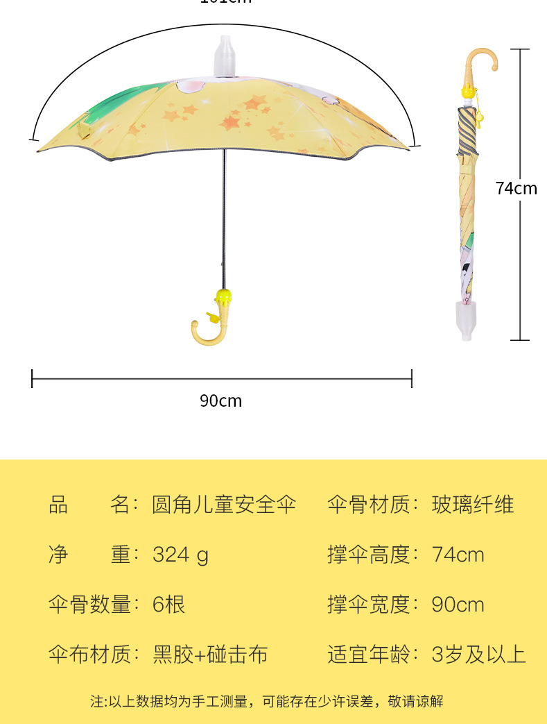 어린이용 둥근 모서리 안전 우산, 유치원생 만화 우산, 반사 스트립, 직선형 손잡이, 큰 어린이용 우산, 자외선 차단 UPF40+