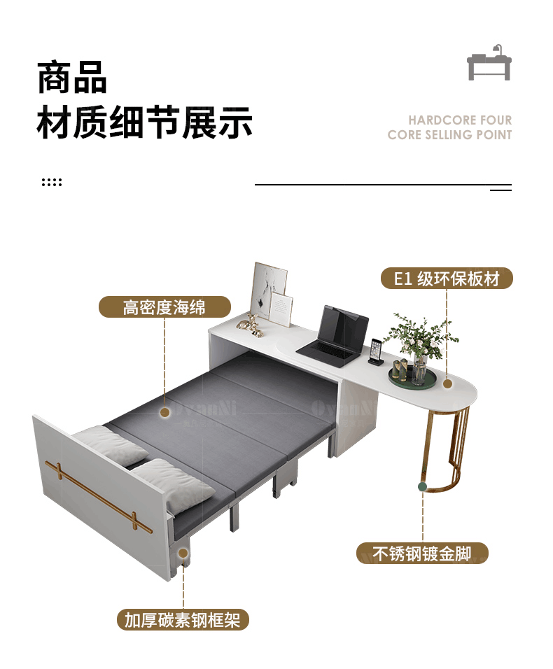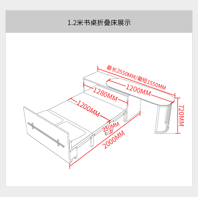 책상 침대 접이식 침대 발코니 확장 및 수축 통합 캐비닛 침대 연구 작은 아파트 다기능 숨겨진 침대