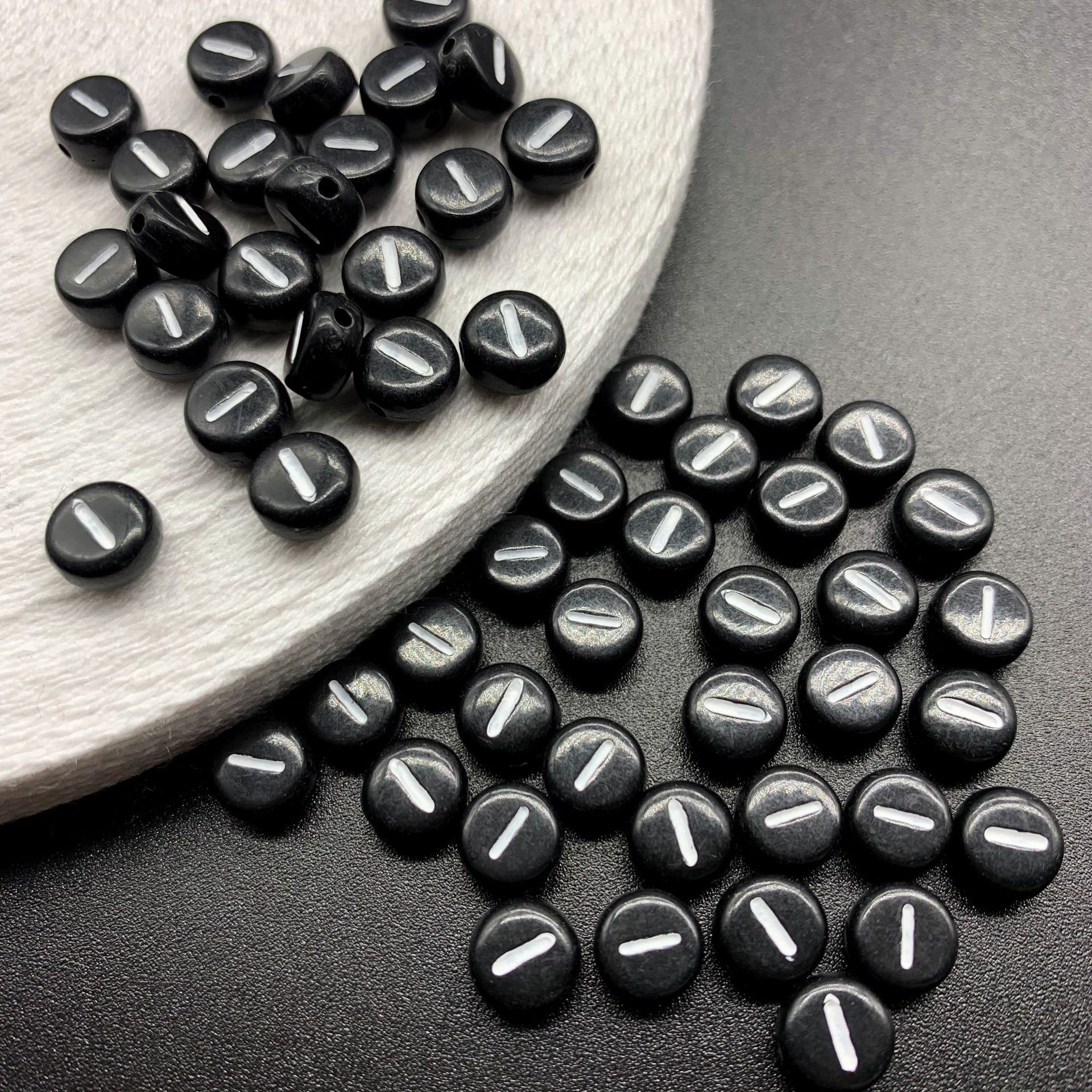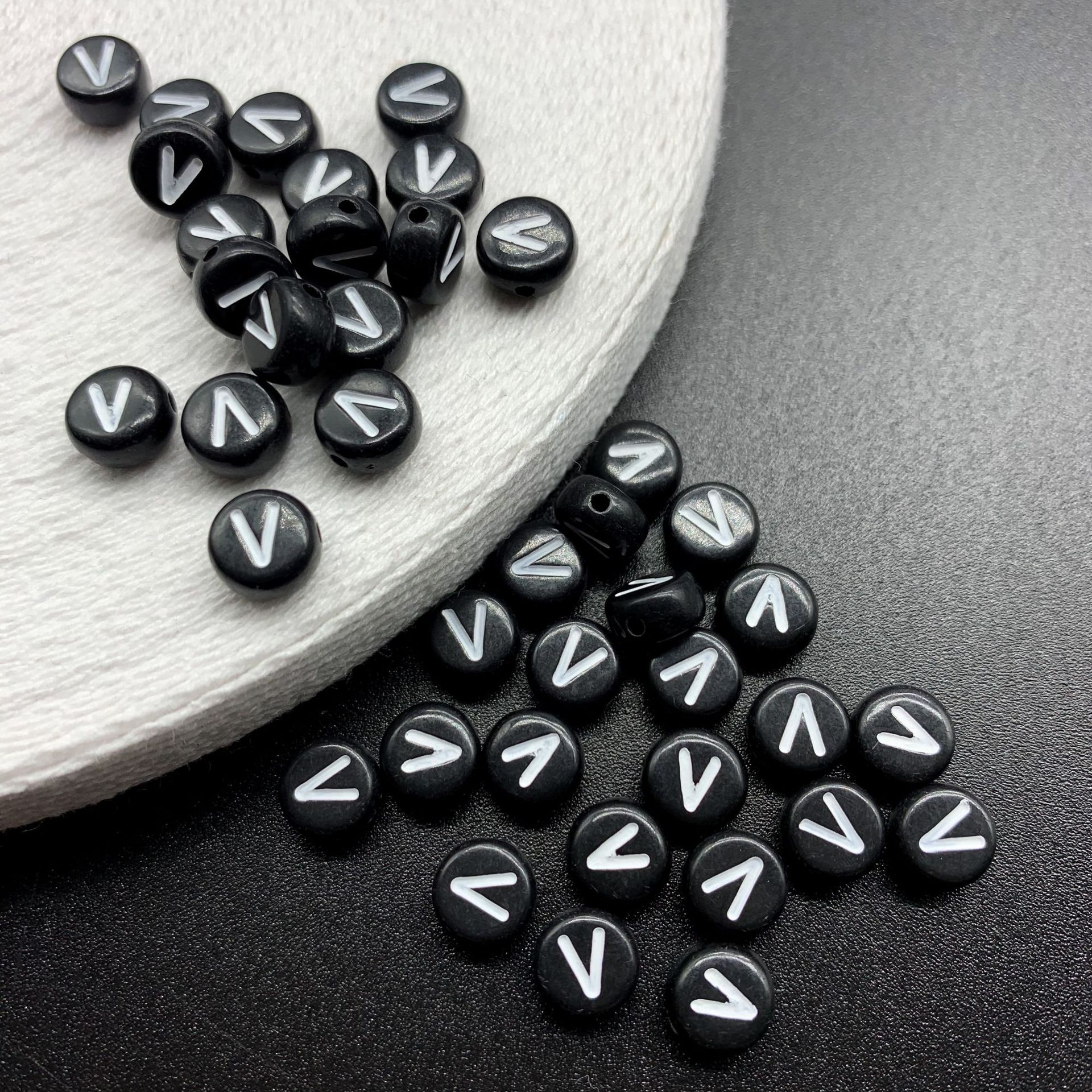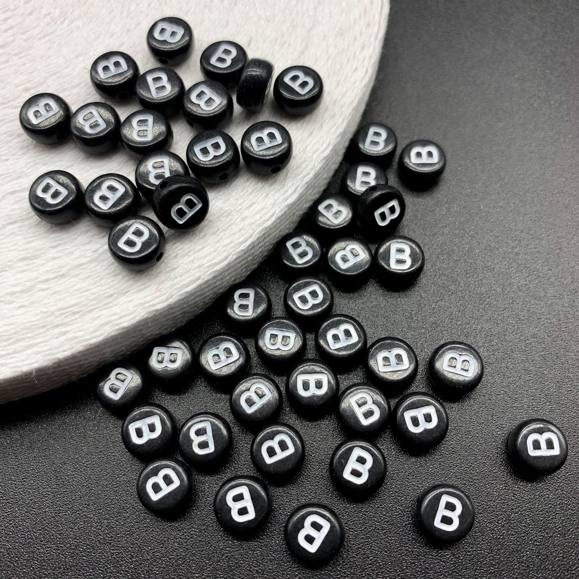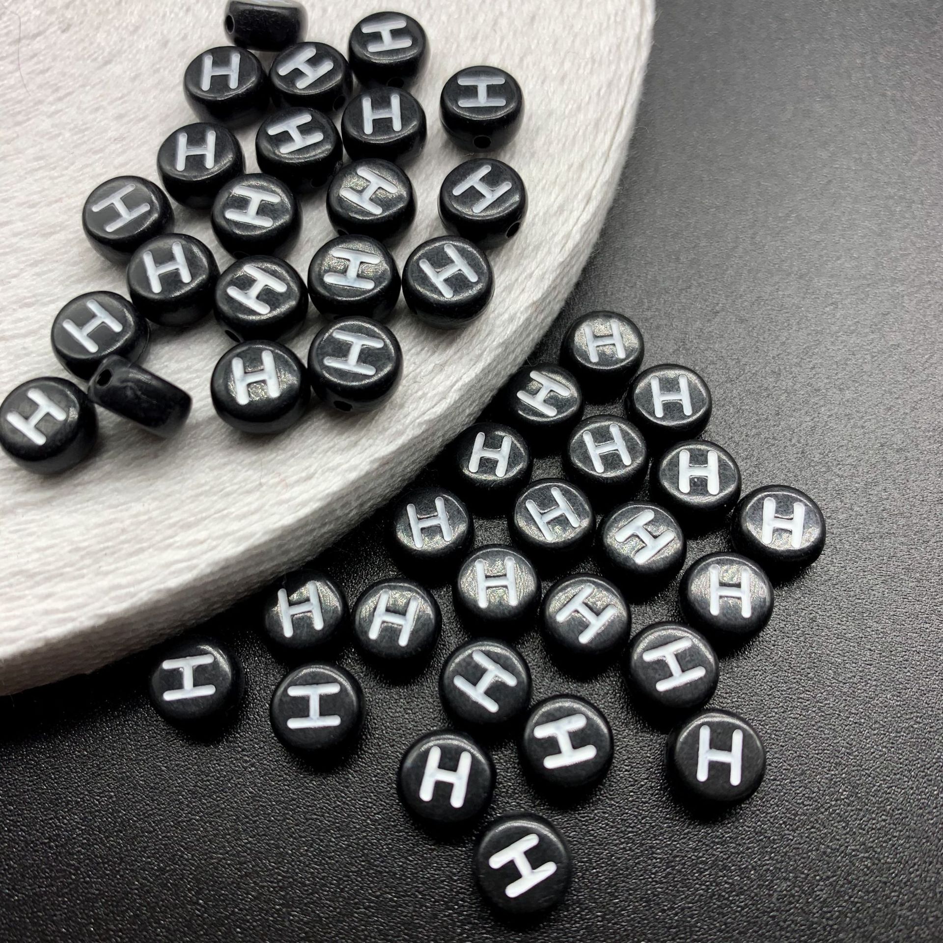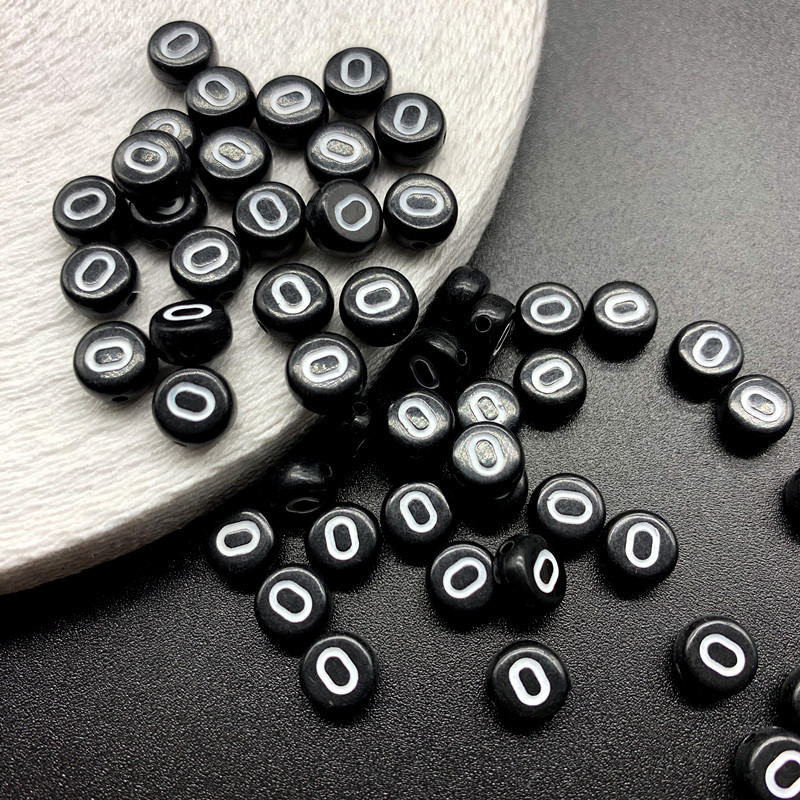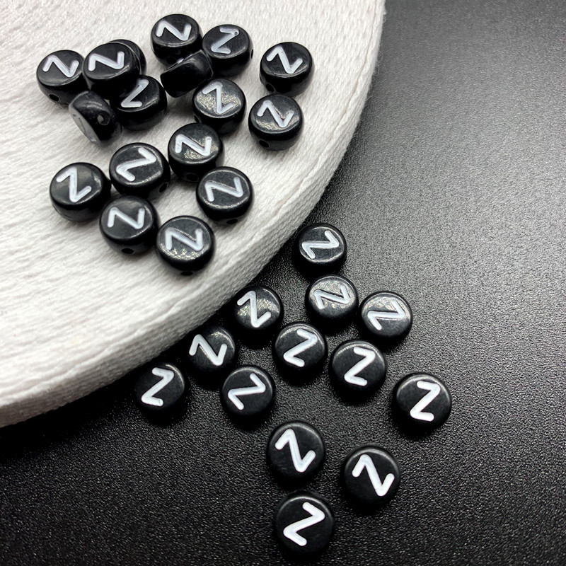 아크릴 문자 비즈 검정색 배경 흰색 문자 26 영어 A-Z 단일 문자 플랫 비즈 diy 팔찌 구슬 액세서리 재료스토어 가기