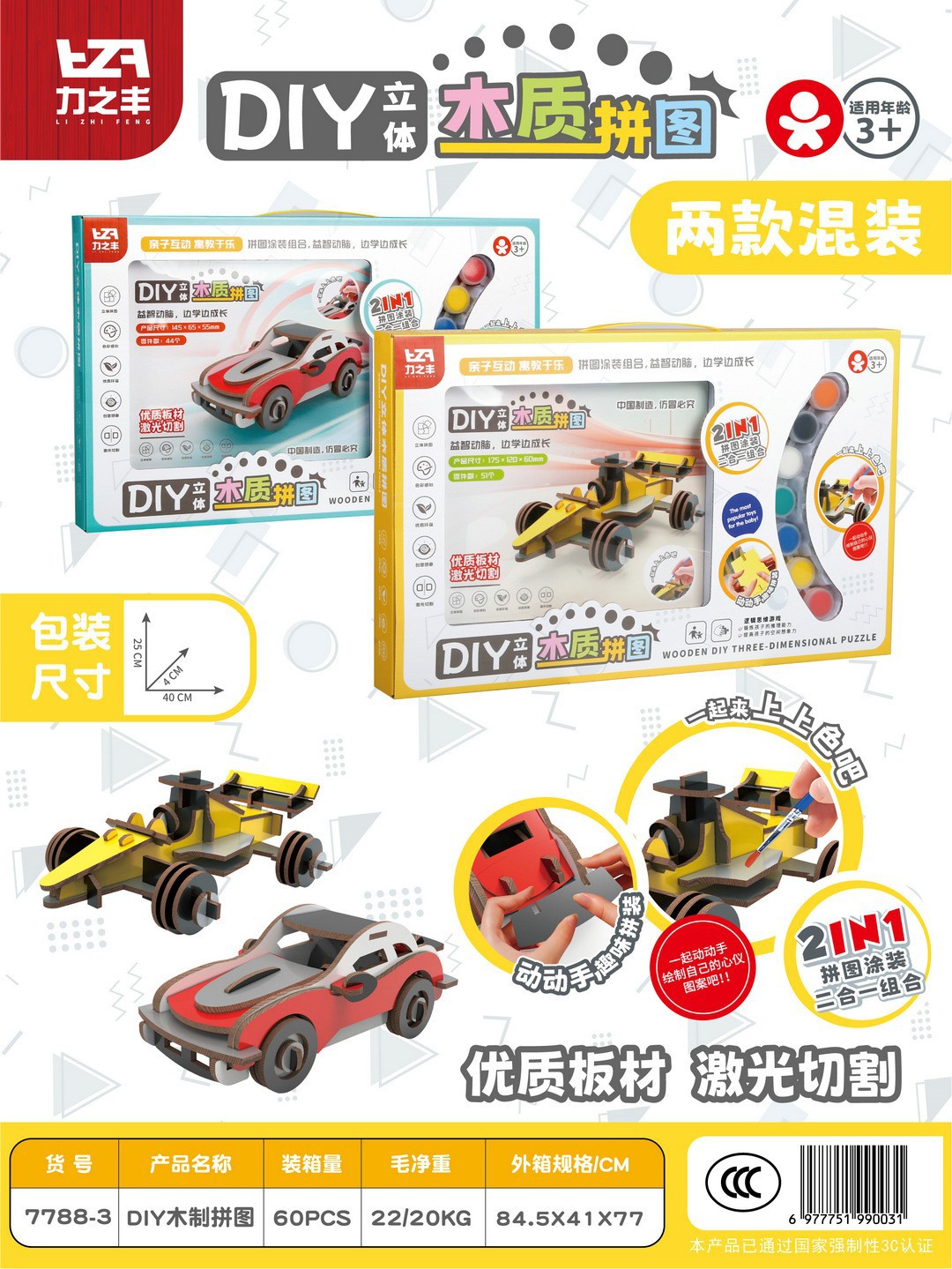 • 자동차 입체 나무 퍼즐 [2종 혼합] 7788-3