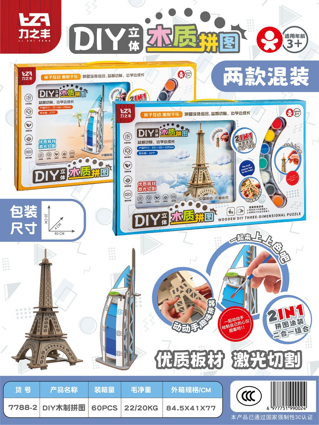 • 건축 입체 나무 퍼즐 [2종 혼합] 7788-2