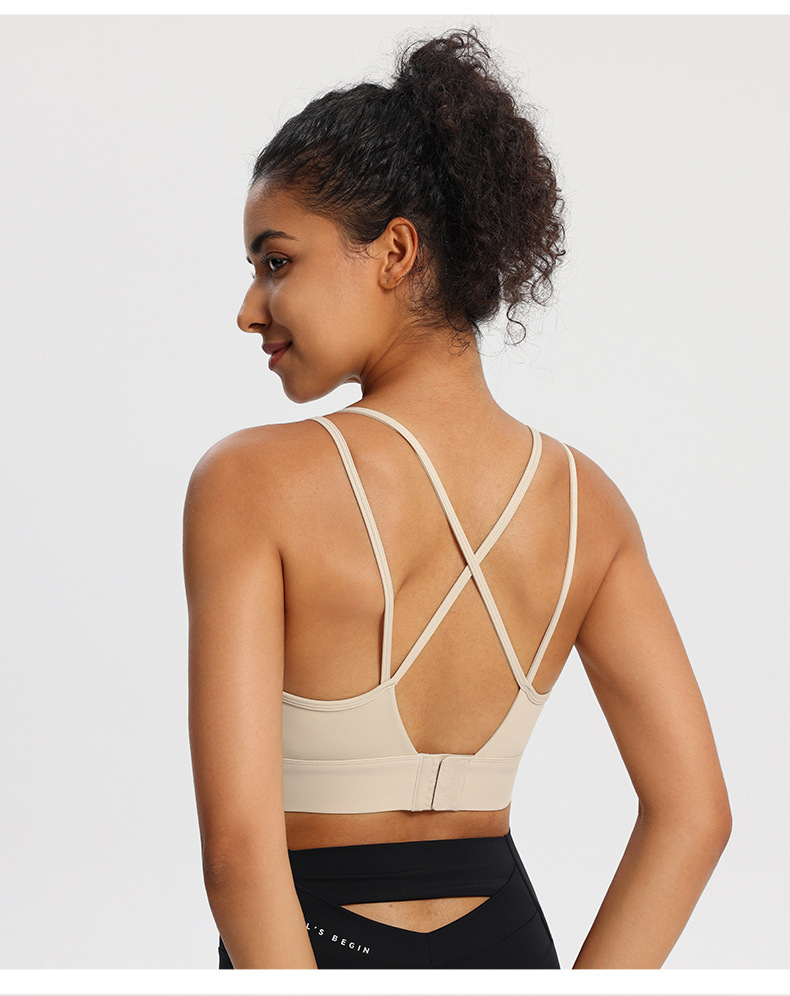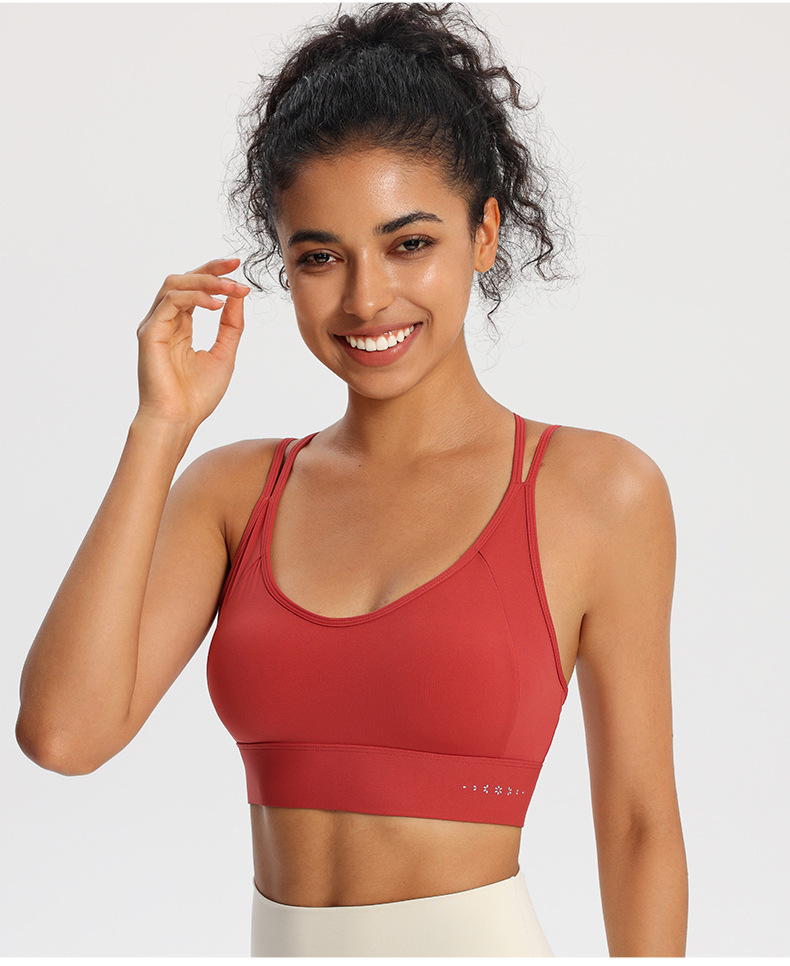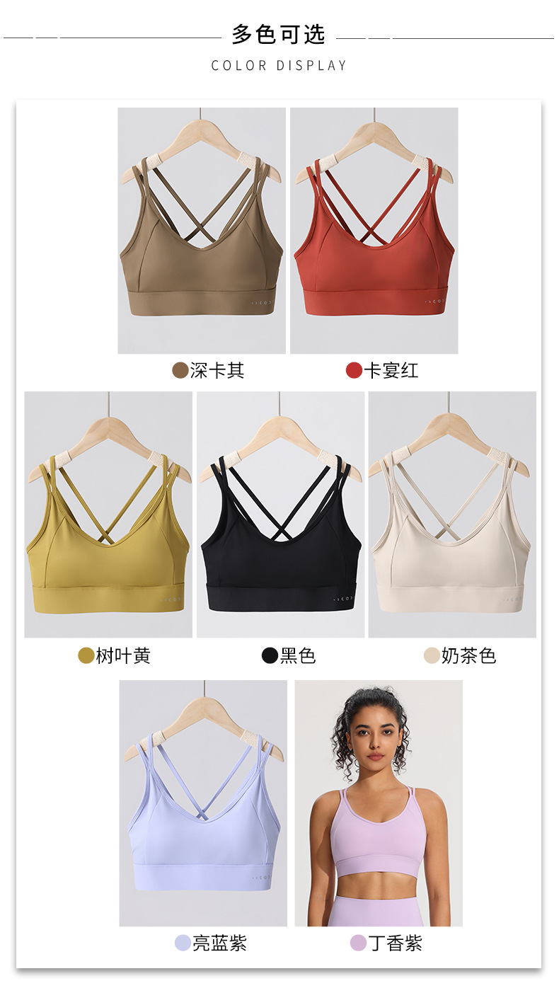 크로스 뷰티 백 스포츠 조끼 여성 충격 방지 푸시 업 러닝 퀵 드라이 피트니스 브래지어 고정 컵 요가 속옷 탑