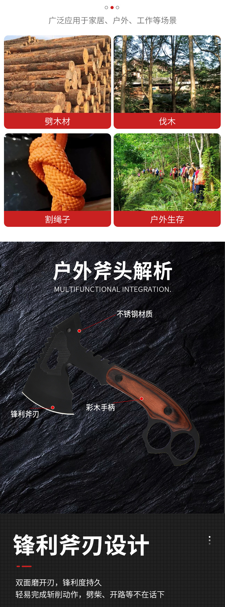 공장 도매 야외 다기능 도끼 창조적 인 색상 나무 손잡이 자동차 자기 방어 도끼 나무 집 전술 도끼
