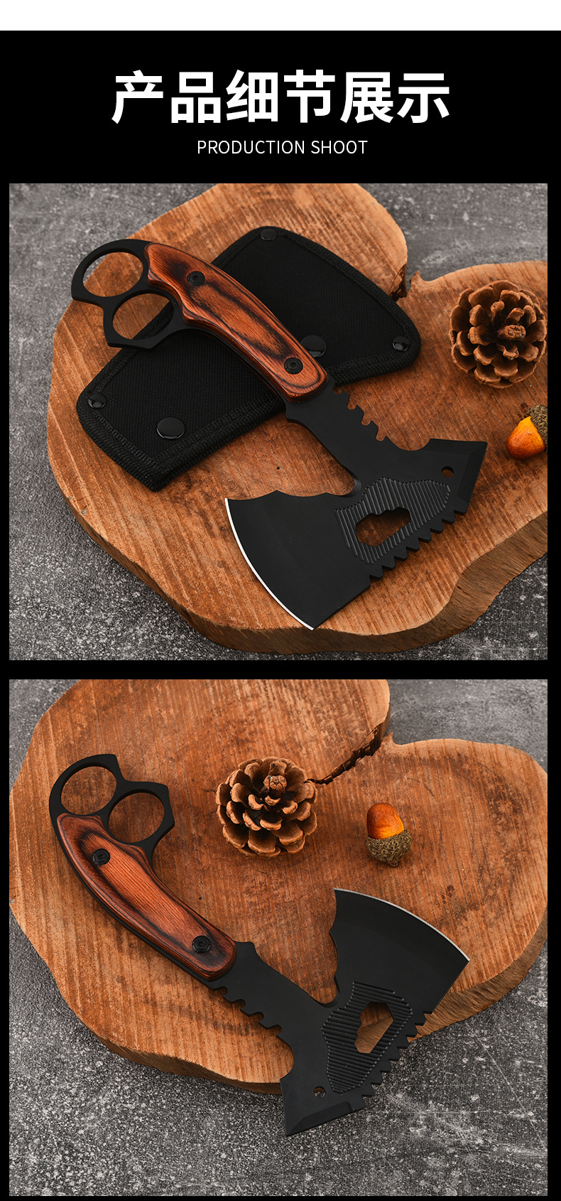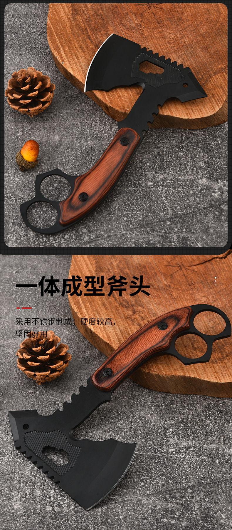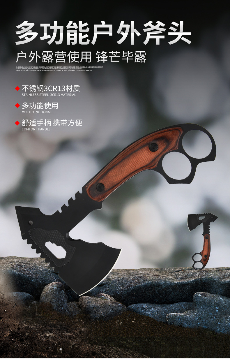 공장 도매 야외 다기능 도끼 창조적 인 색상 나무 손잡이 자동차 자기 방어 도끼 나무 집 전술 도끼스토어 가기