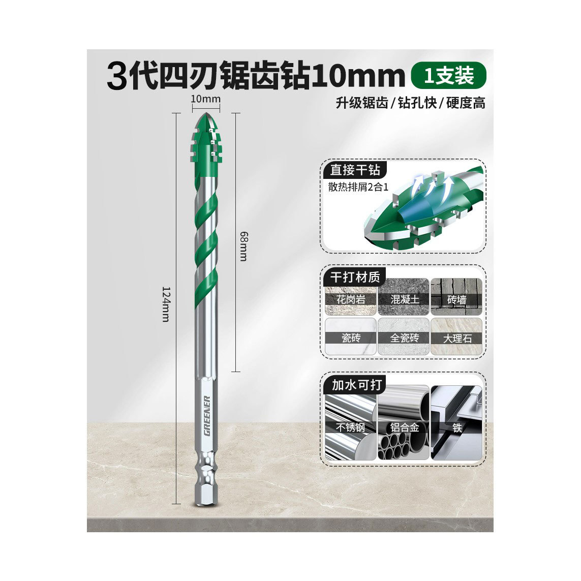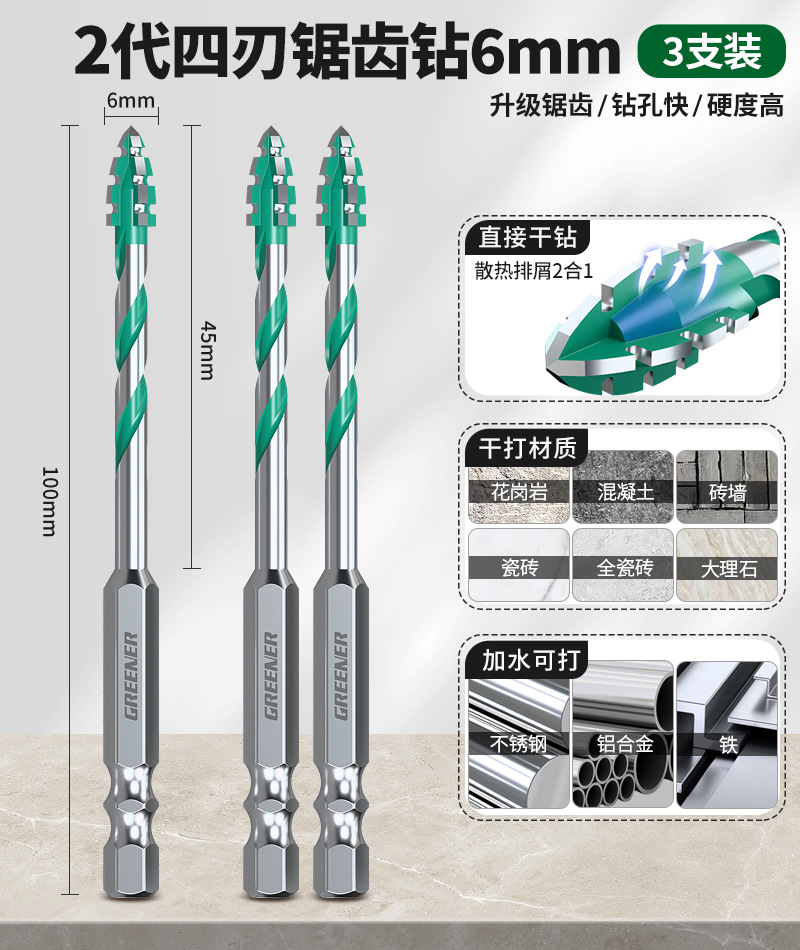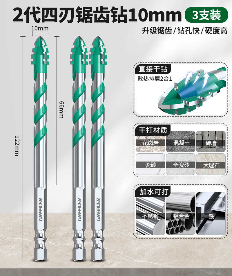 녹색 숲 4 날 톱니 모양의 편심 드릴 세라믹 타일 콘크리트 드릴링 특수 전기 드릴 헤드 초고 경도 건식 드릴링스토어 가기
