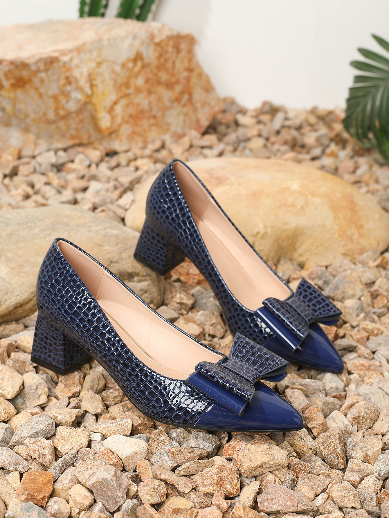 국경 대외 무역 한쪽 다리 두꺼운 뒤꿈치 단일 신발 2025 새로운 지적 발가락 활 여성 하이힐 편안한 대형 신발스토어 가기