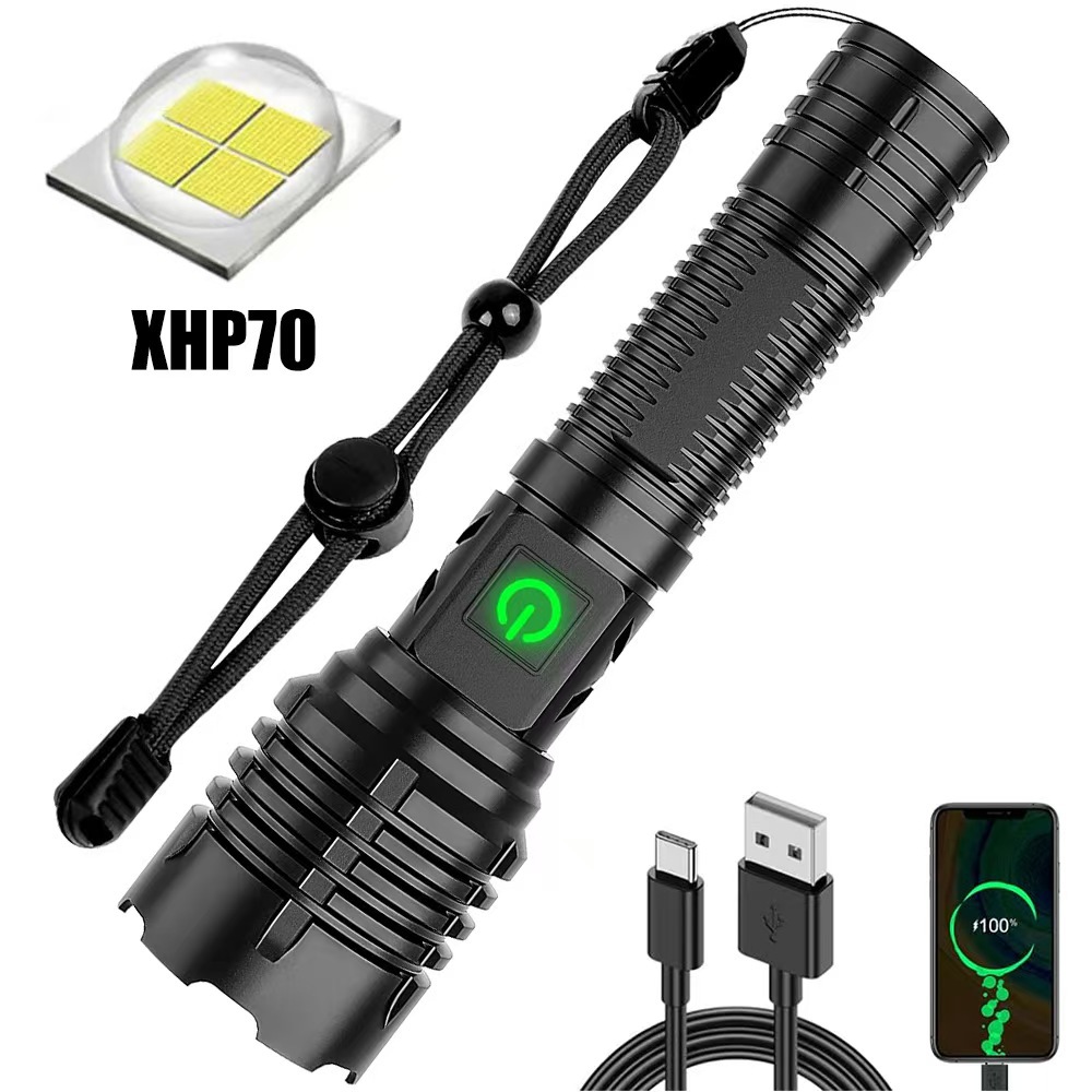 국경 간 새로운 XHP70 다기능 손전등 USB 충전 텔레스코픽 초점 야외 비상 조명 손전등스토어 가기