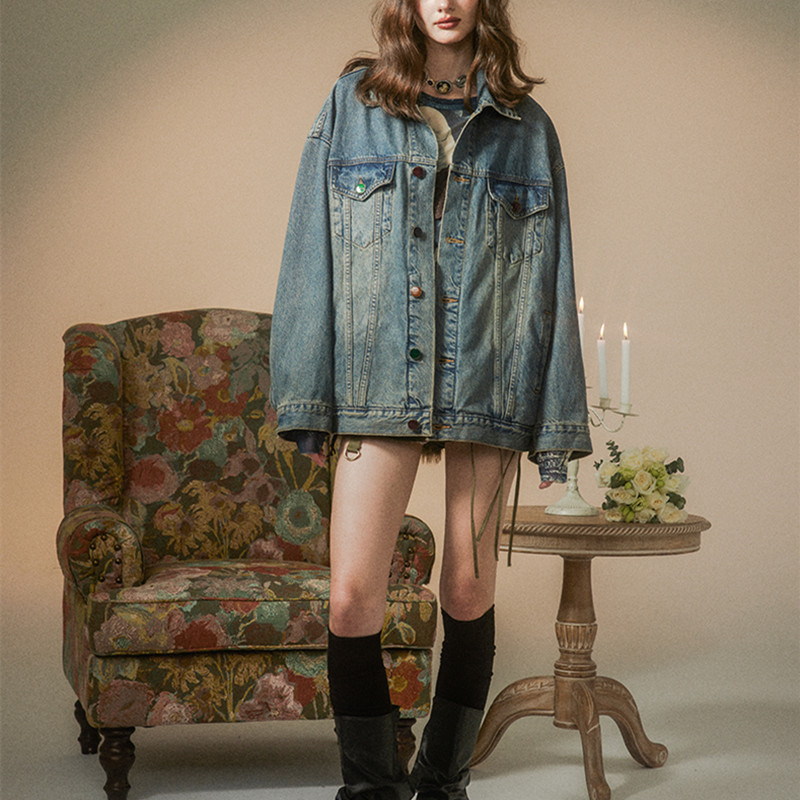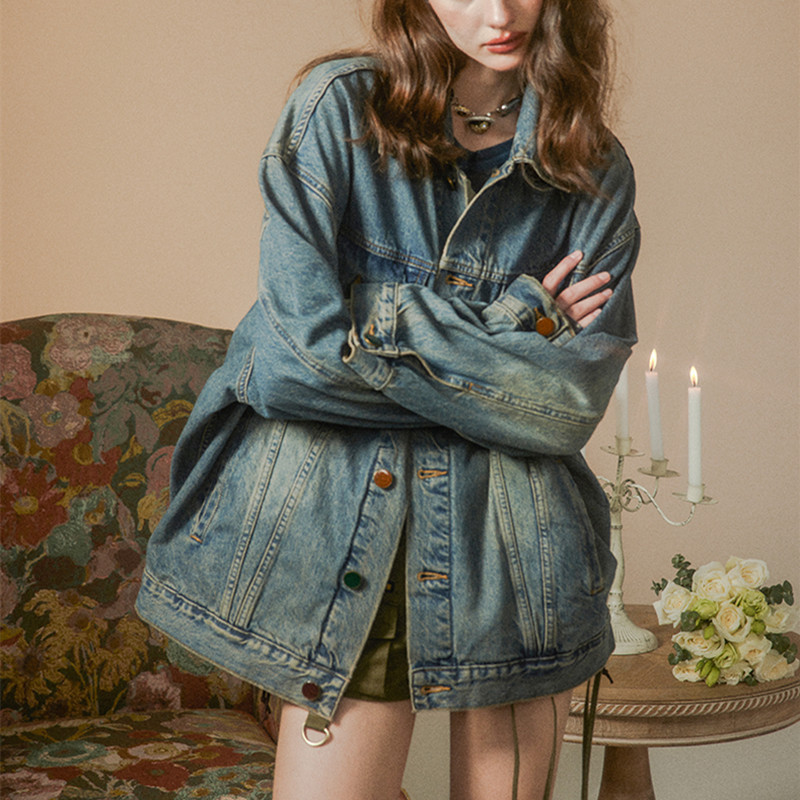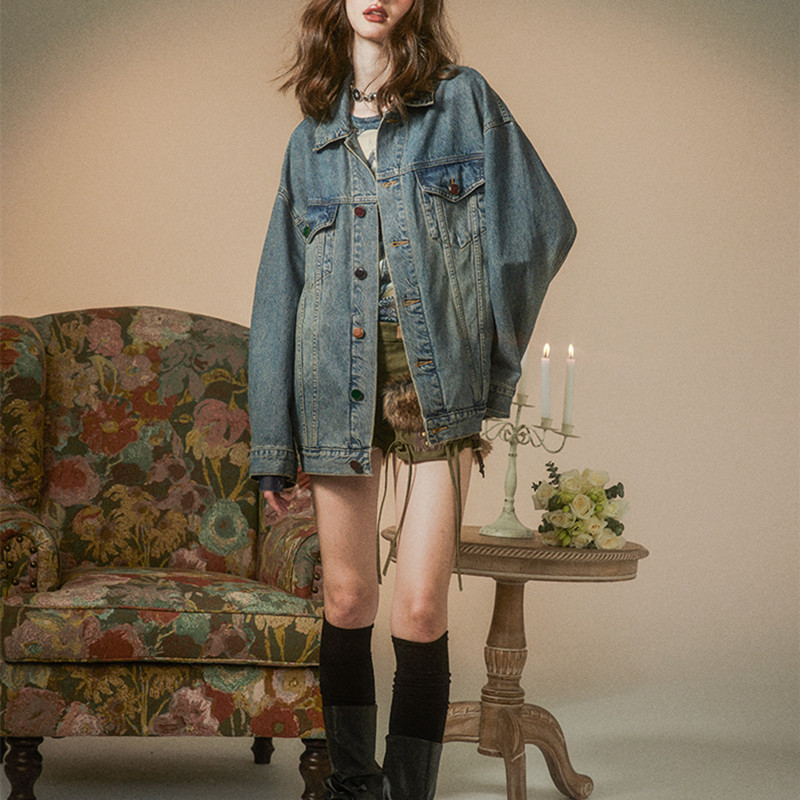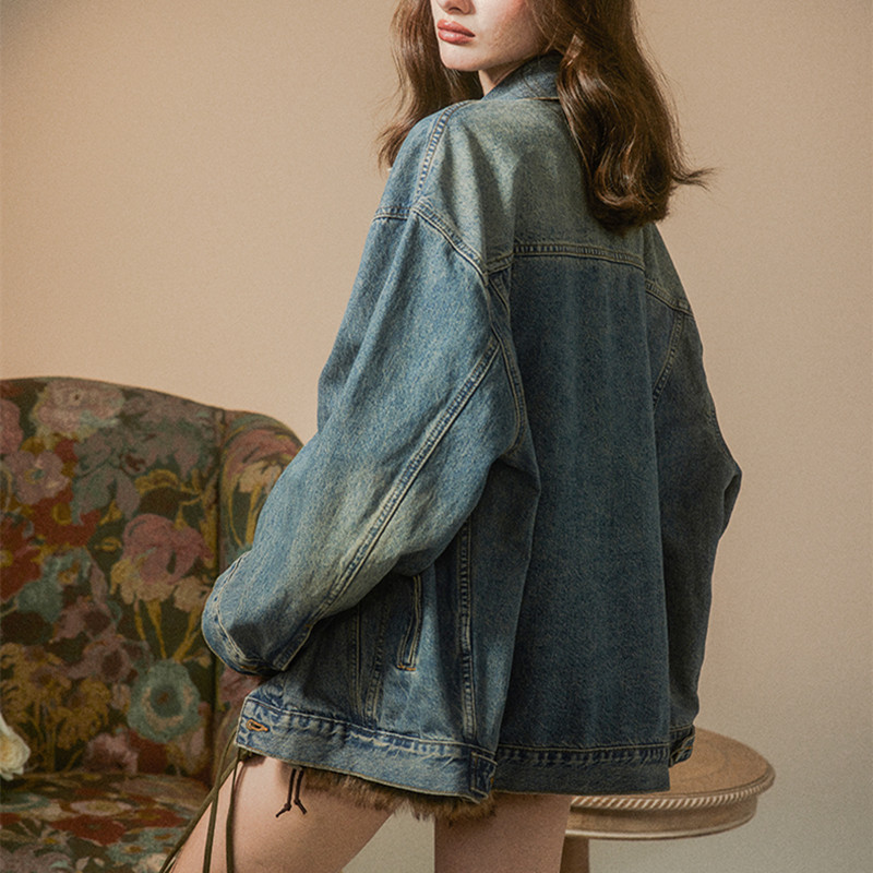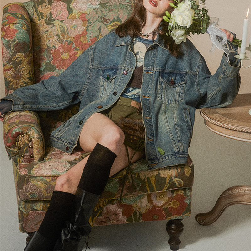 디자인 감각 데님 코트 여성의 봄과 가을 2024 새로운 패션 브랜드 느슨한 틈새 복고풍 고민 재킷 bf 탑스토어 가기