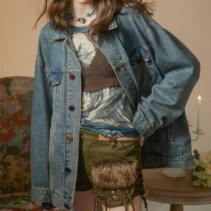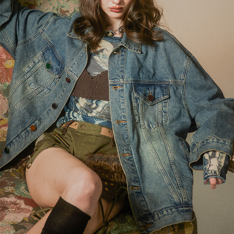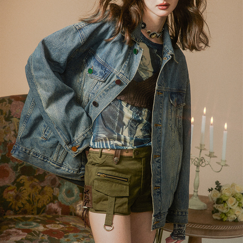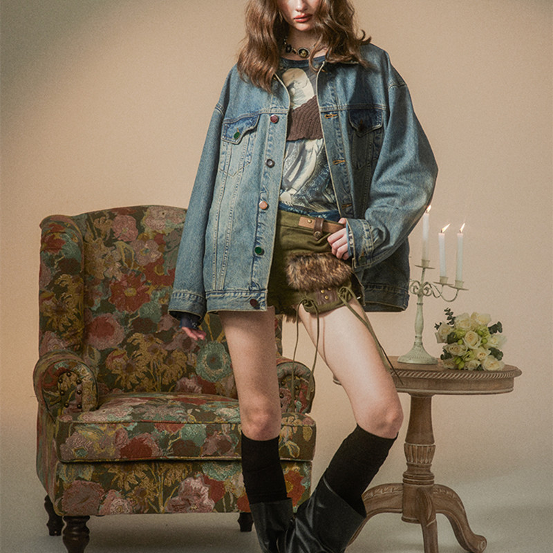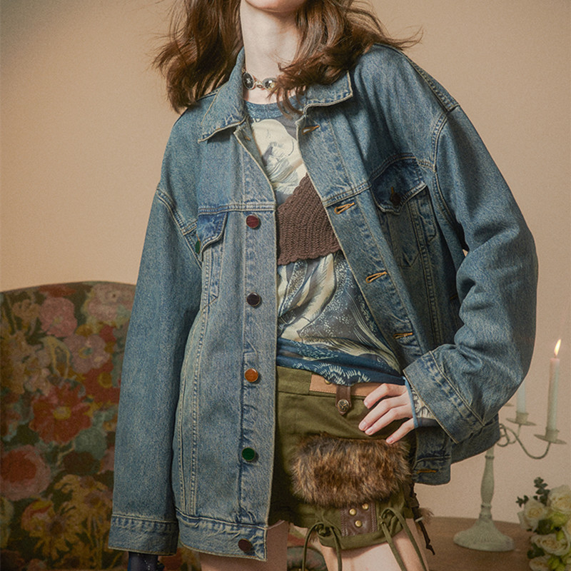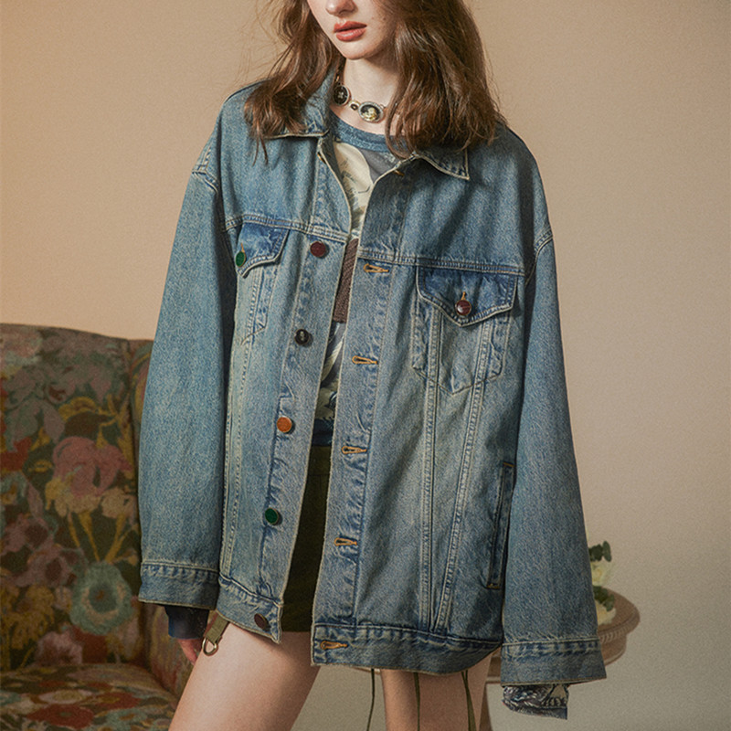 디자인 감각 데님 코트 여성의 봄과 가을 2024 새로운 패션 브랜드 느슨한 틈새 복고풍 고민 재킷 bf 탑스토어 가기