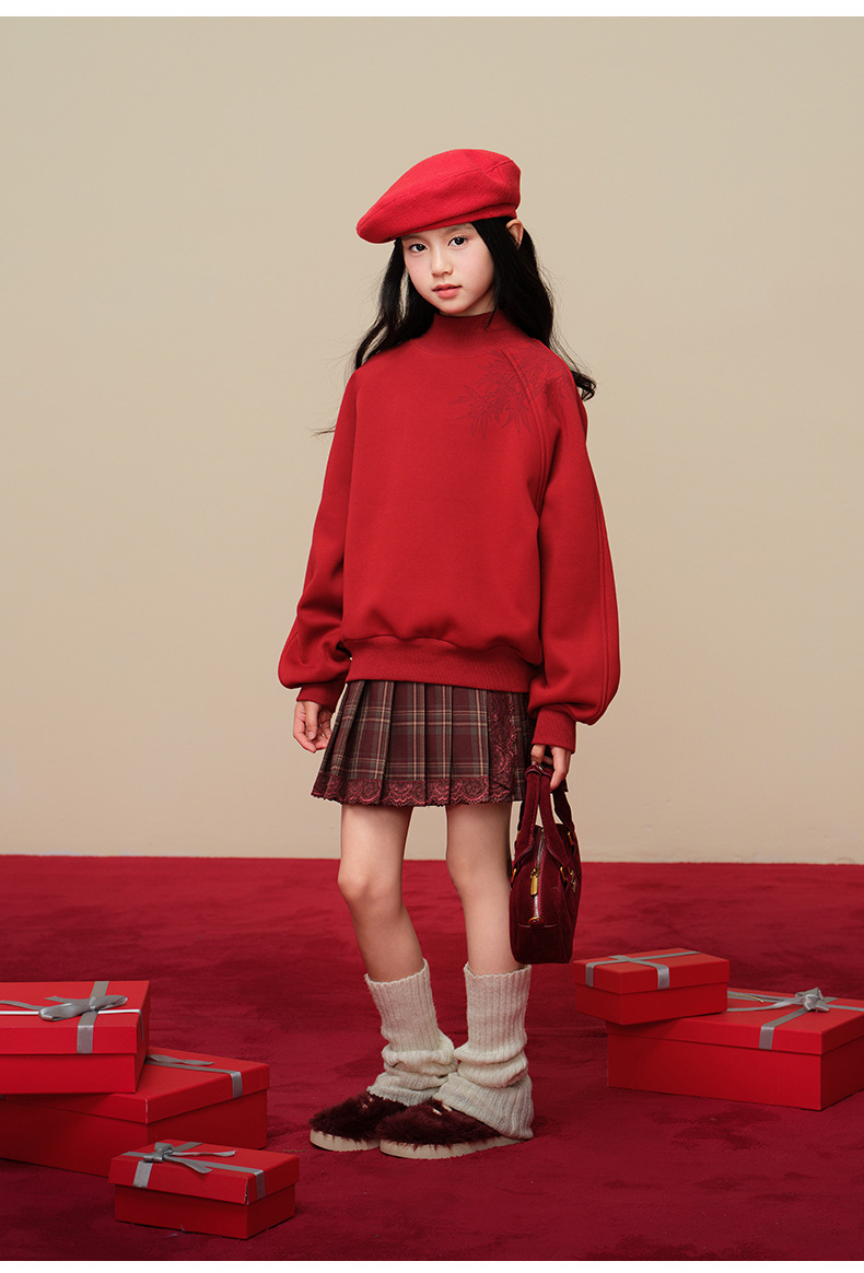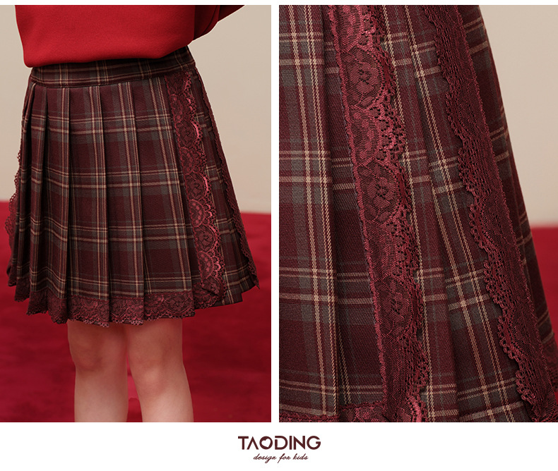 Amoy Town [Ancra Red Plaid] 레이스 레트로 주름 치마 가을 및 겨울 대학 Fengao 곡물 양털 치마 소녀를위한