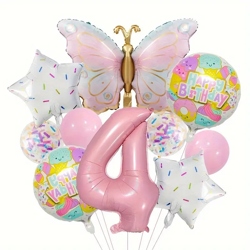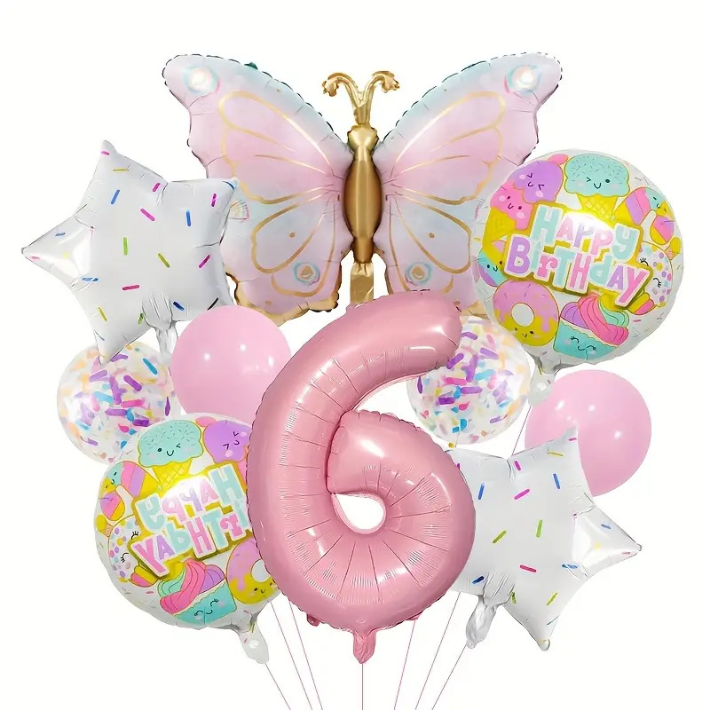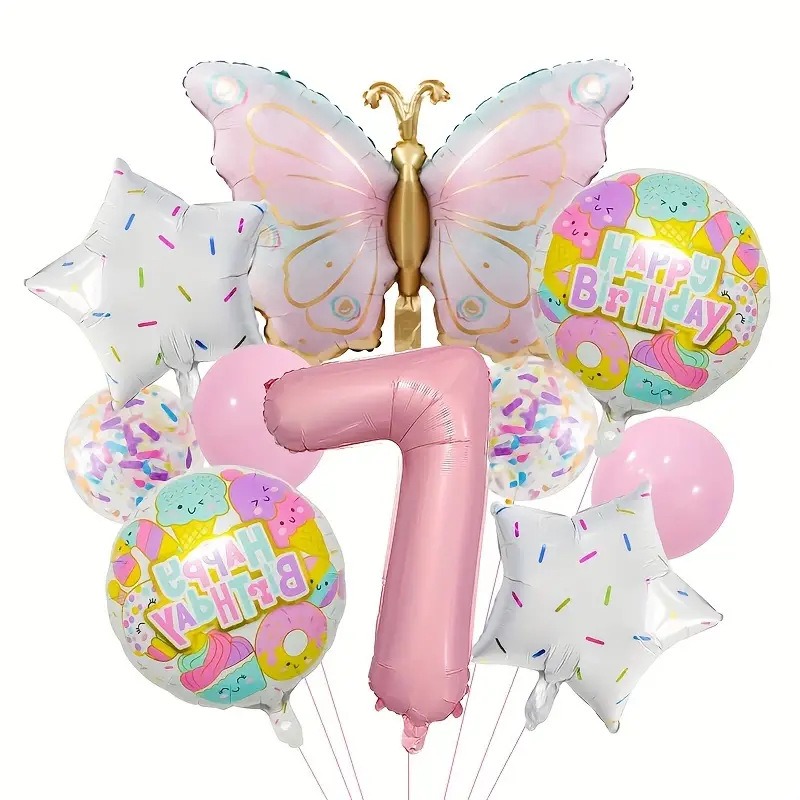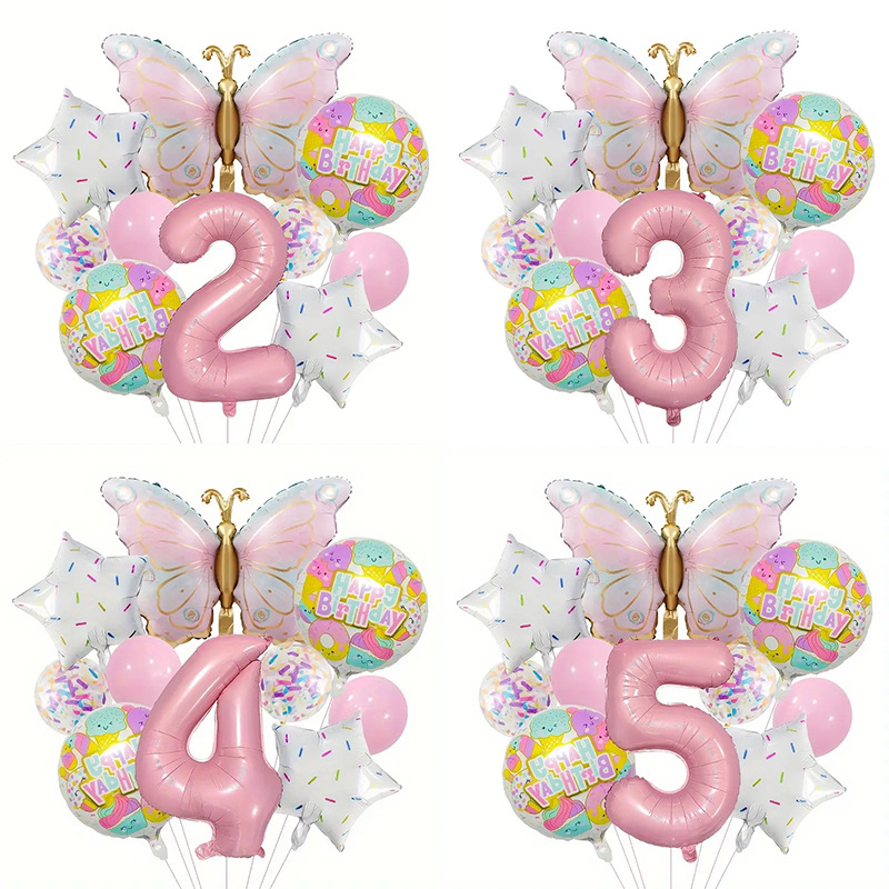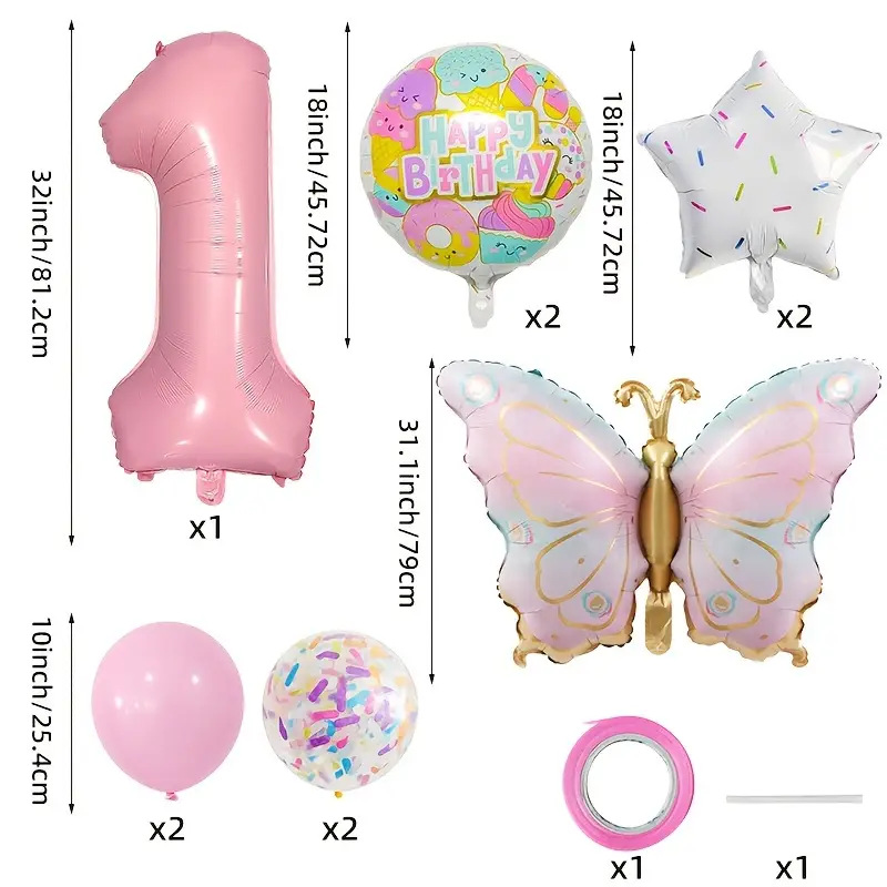 产品名称:淡雅哑光蝴蝶甜甜圈气球套装32寸数字儿童生日派对装饰布置拍照道具