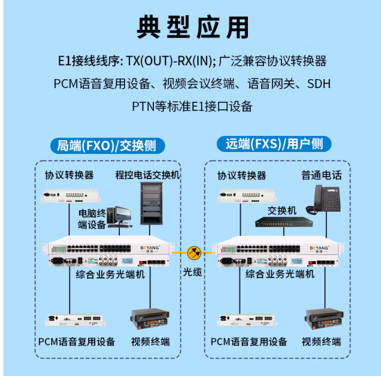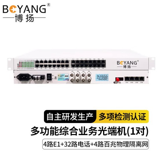 博扬 综合多业务光端机 2M电话光端机 4路E1+32路电话+4路百兆物理隔离网 单纤60km 1对 BY-32P4E4Fv*1*合格证*保修卡