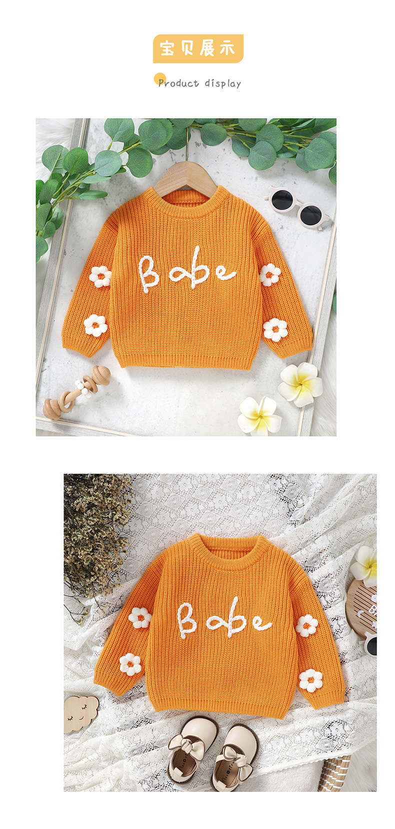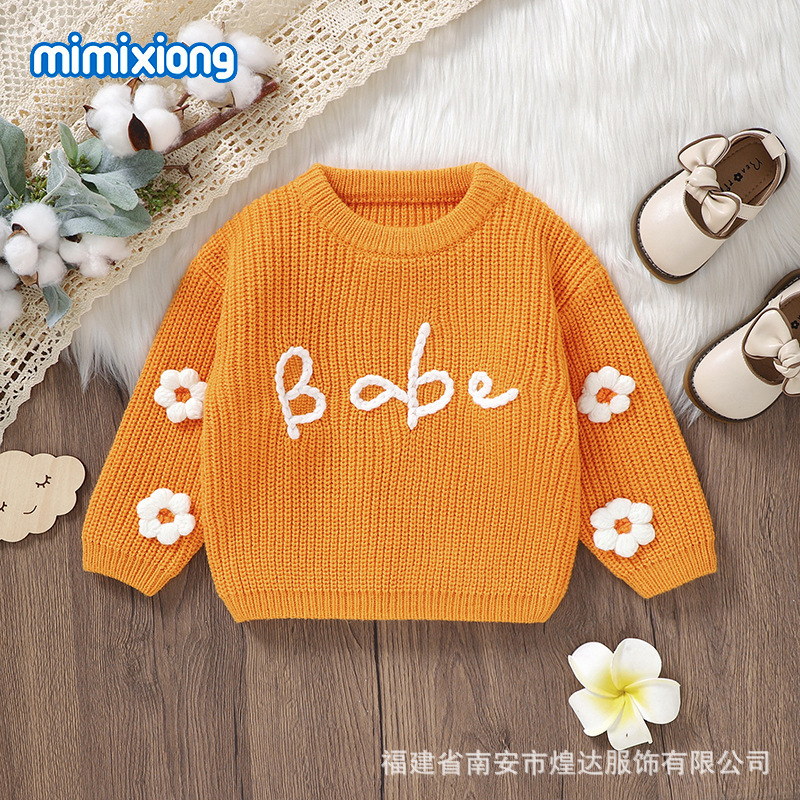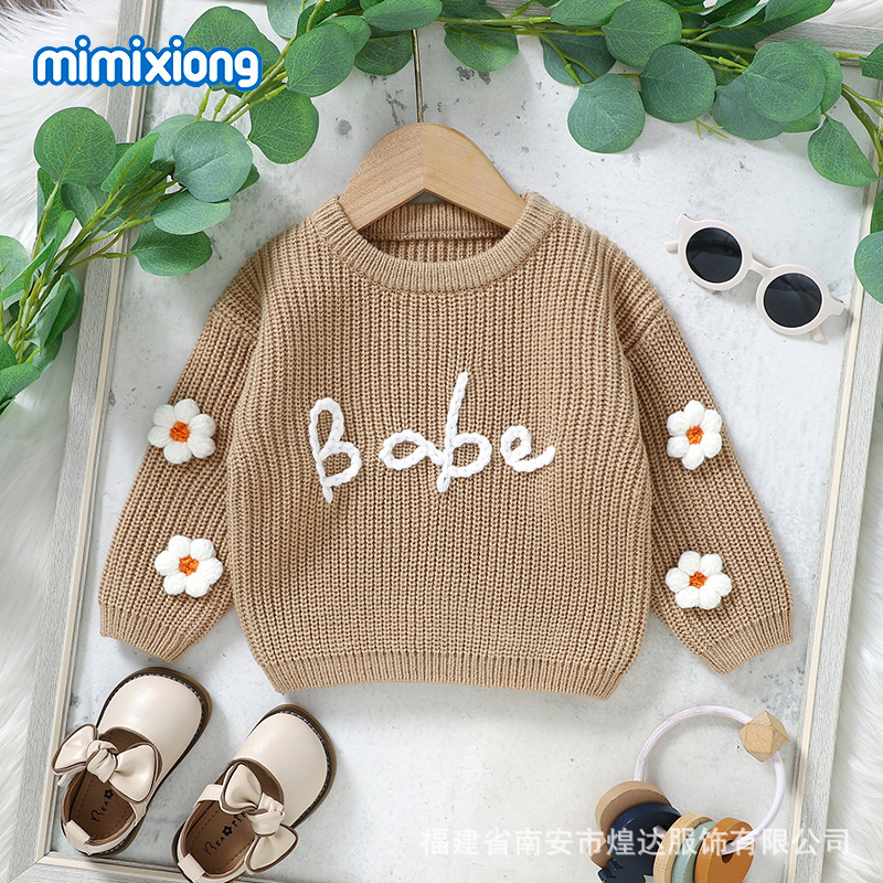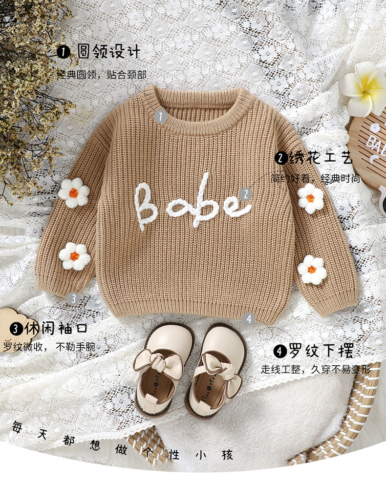 Ins 뜨거운 판매 가을, 겨울 새로운 아기 손으로 수 놓은 니트 라운드 넥 탑 아기 소녀 귀여운 스웨터스토어 가기