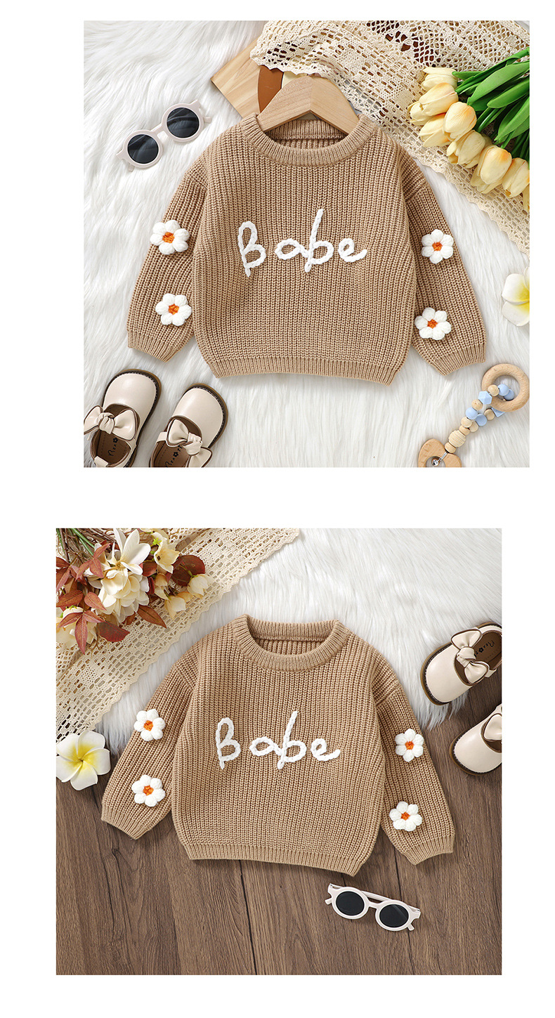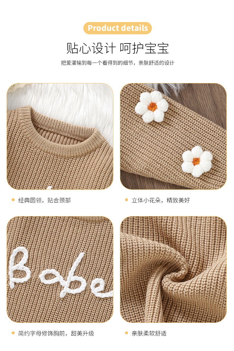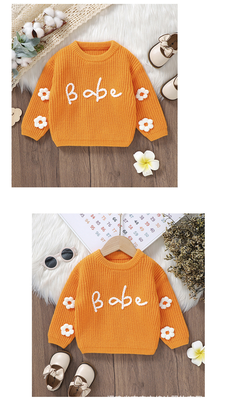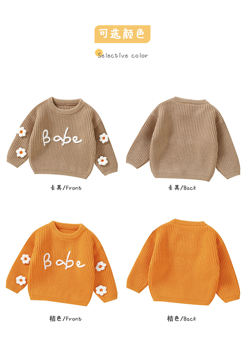 Ins 뜨거운 판매 가을, 겨울 새로운 아기 손으로 수 놓은 니트 라운드 넥 탑 아기 소녀 귀여운 스웨터스토어 가기
