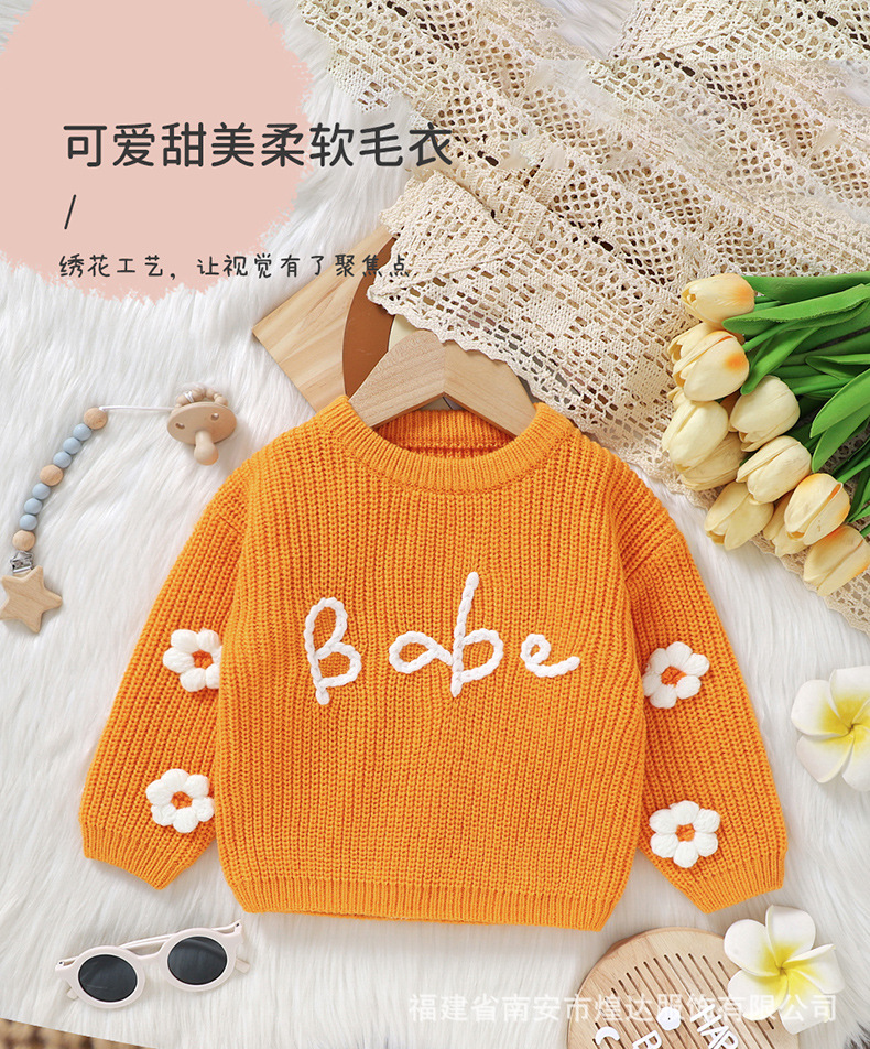 Ins 뜨거운 판매 가을, 겨울 새로운 아기 손으로 수 놓은 니트 라운드 넥 탑 아기 소녀 귀여운 스웨터