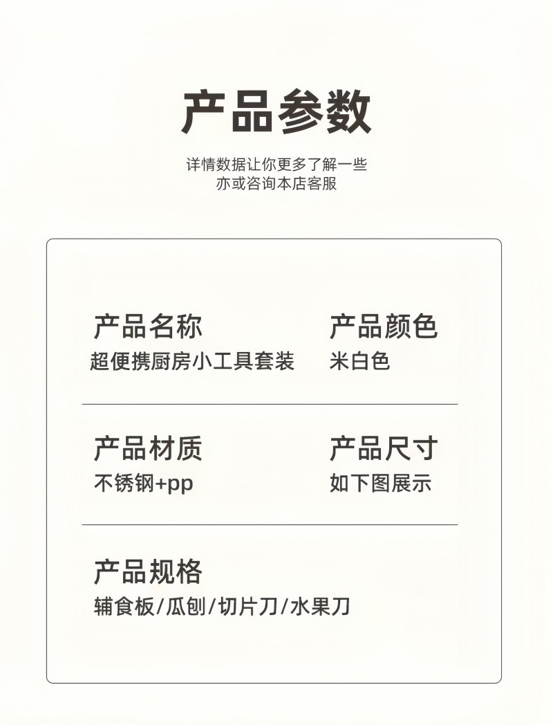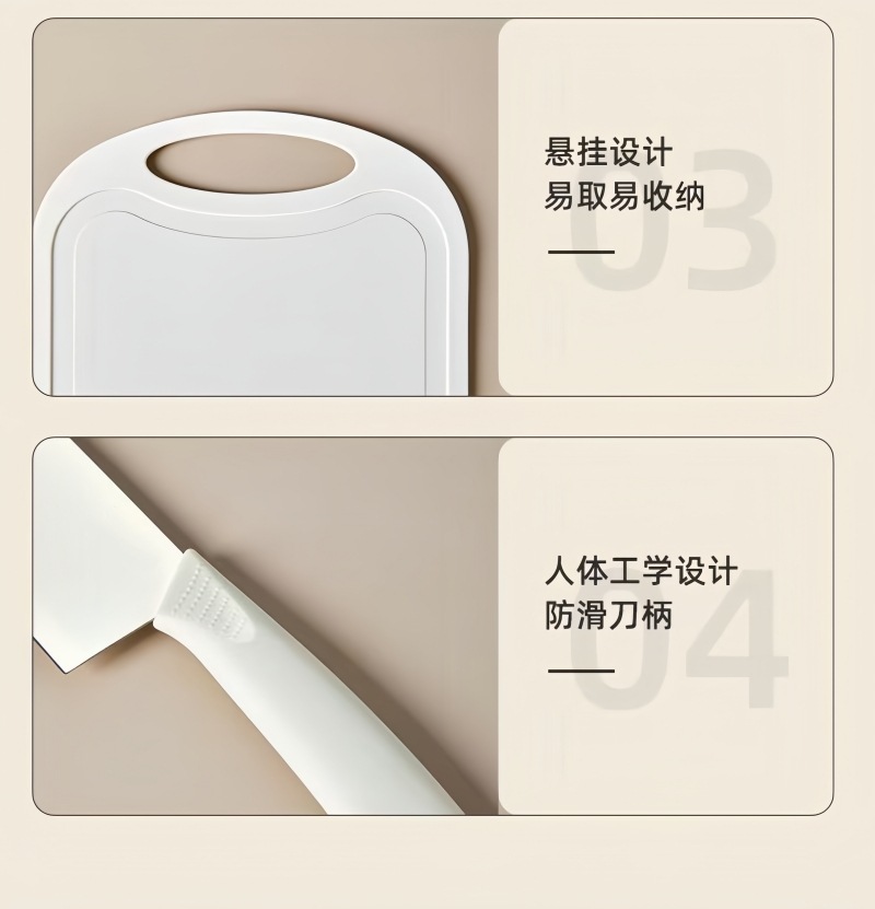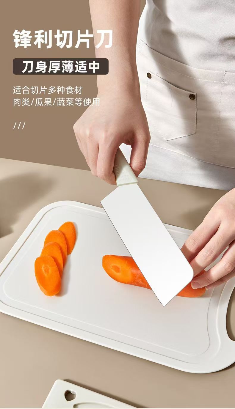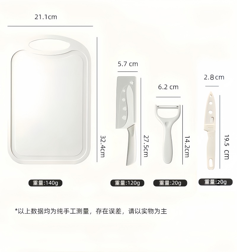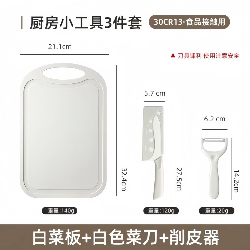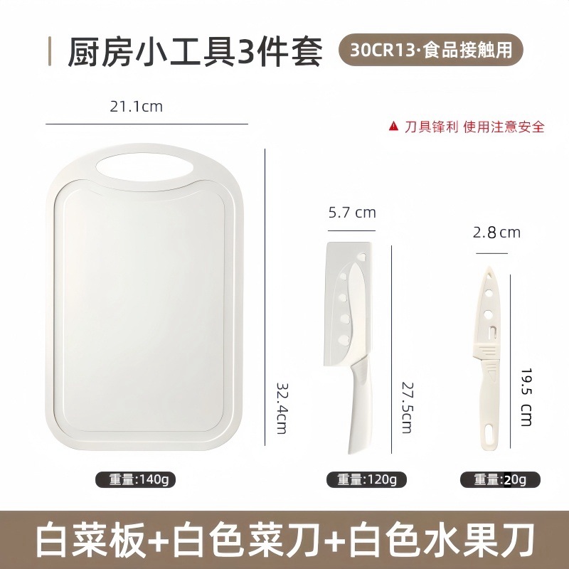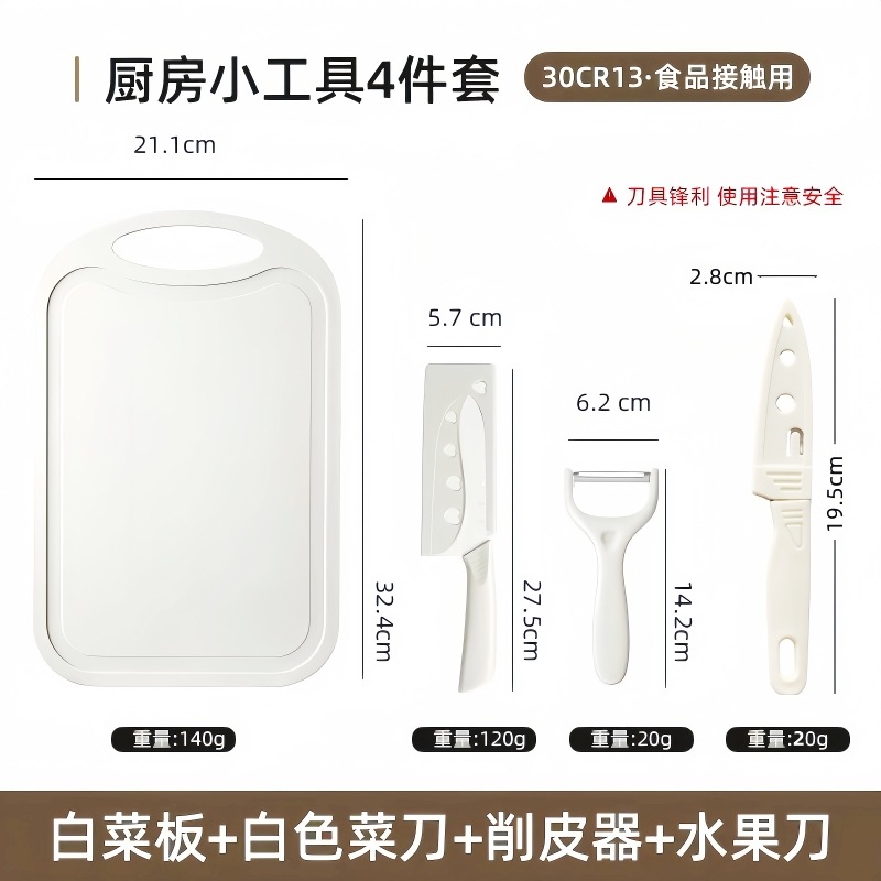• 흰색 도마 + 흰색 주방칼 + 일본식 과일칼 + 흰색 껍질 벗기기 칼