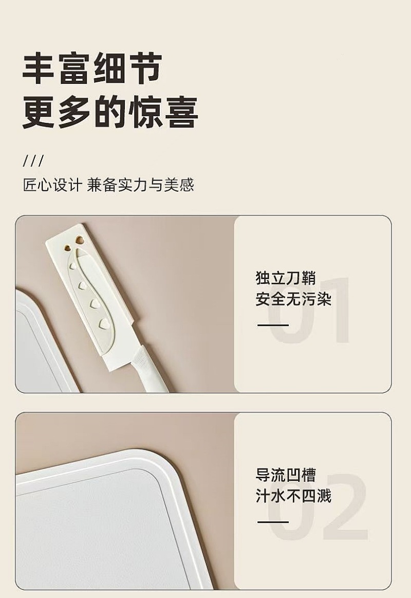 • 흰색 도마 + 흰색 주방칼 + 흰색 껍질 벗기기 칼