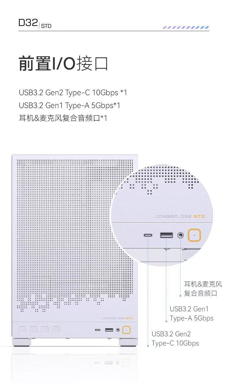 JONSBO Qiao Sibo D32 MATX 데스크탑 측면 작은 섀시 지원 백 플러그 MATX 마더 보드 미니 섀시