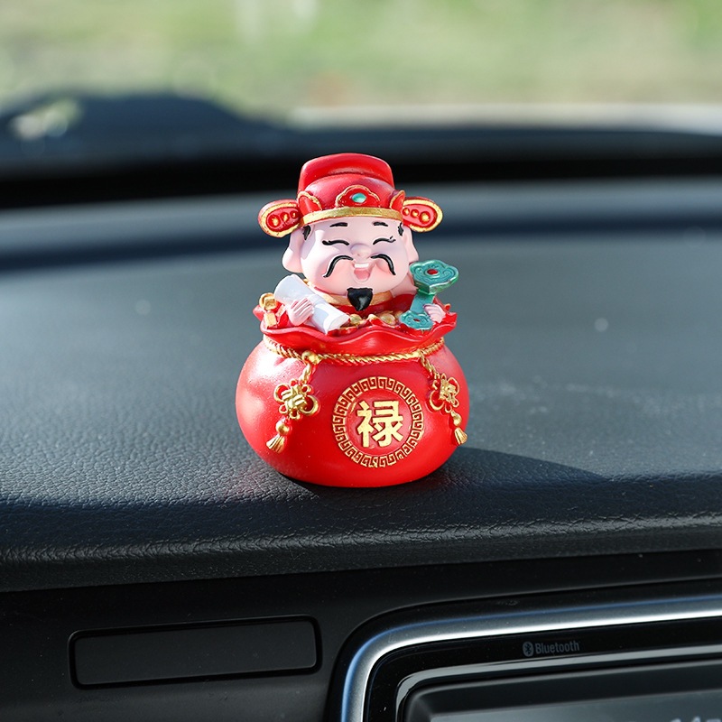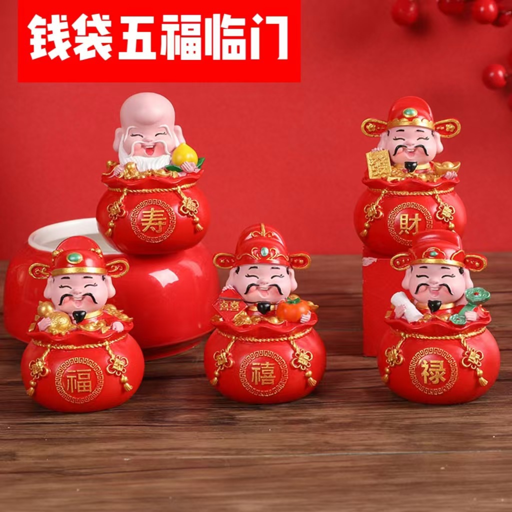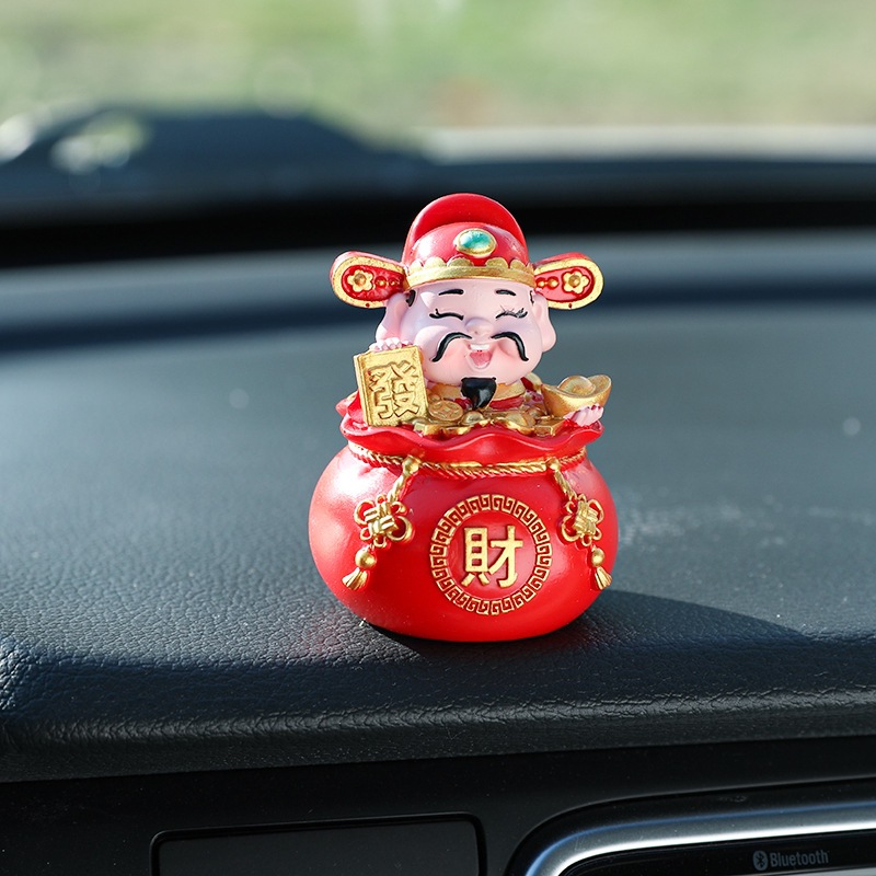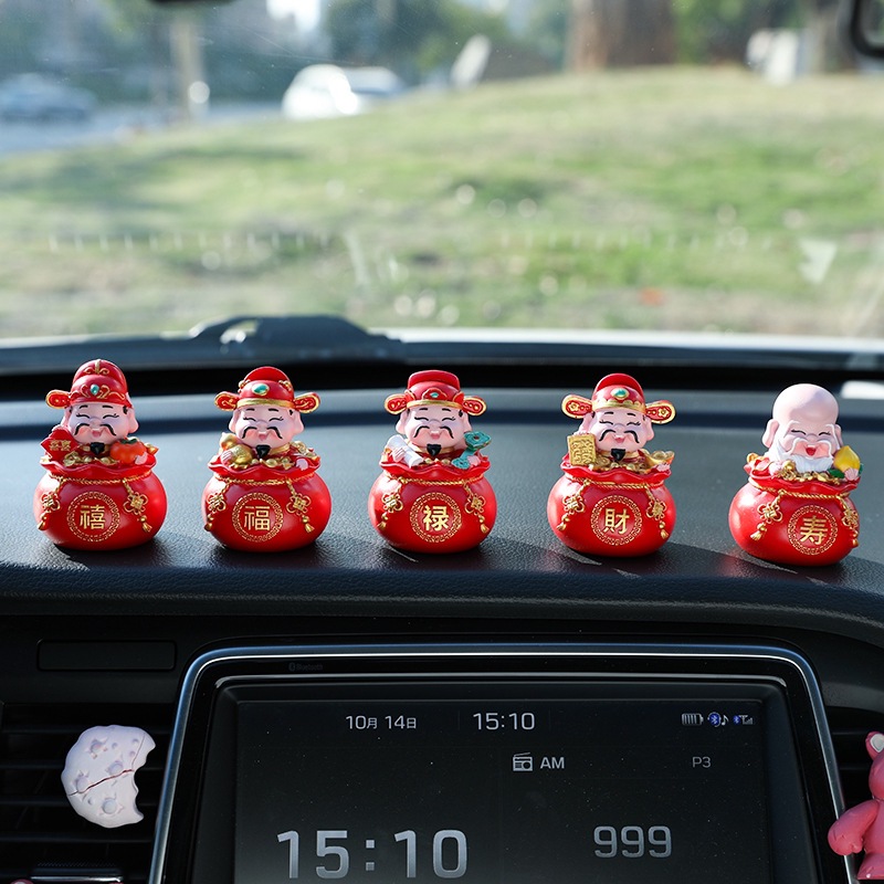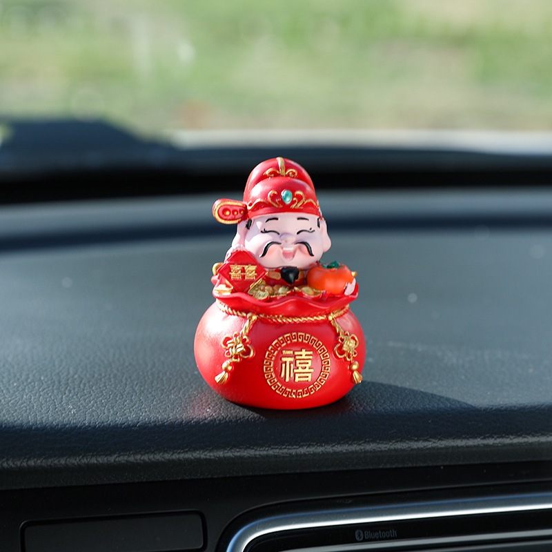 五福财神汽车摆件新年礼物车载内饰摆件钱袋五福临门桌面蛋糕摆件