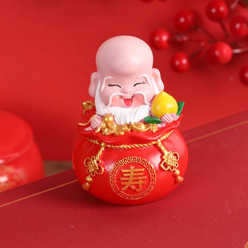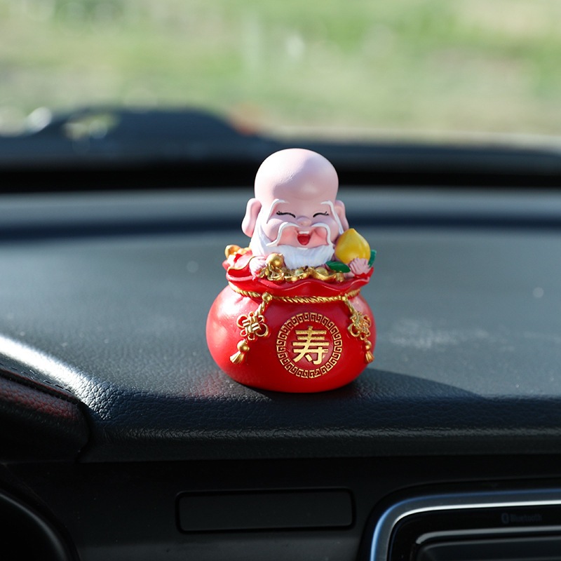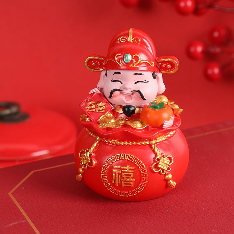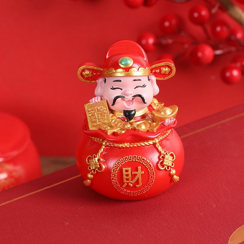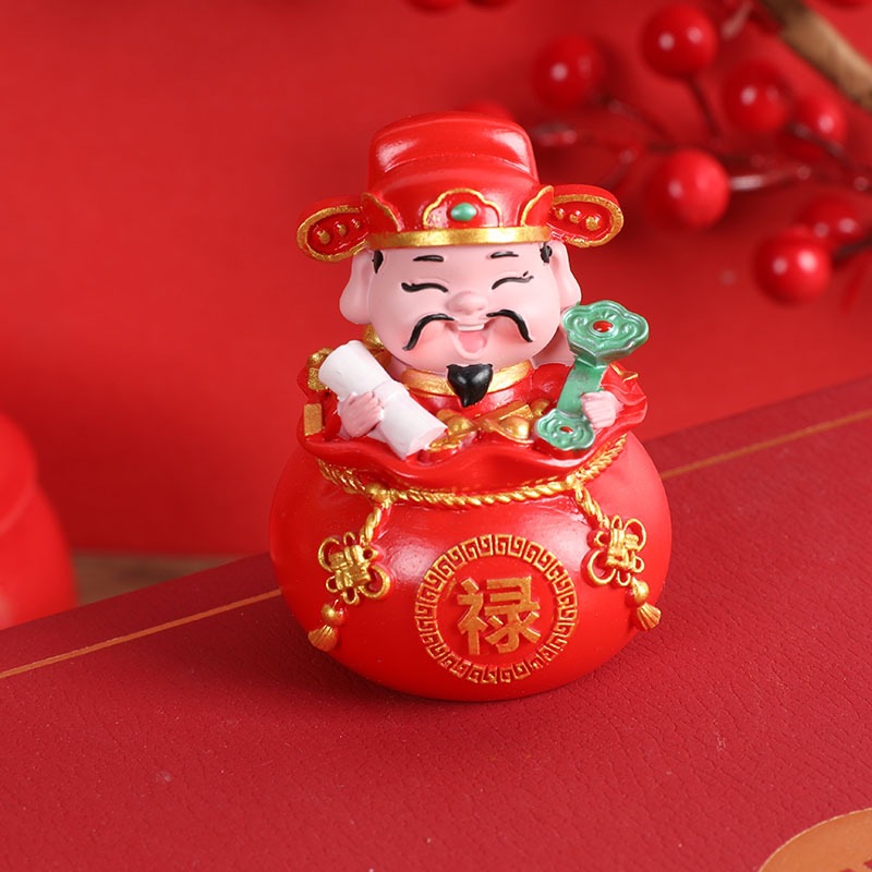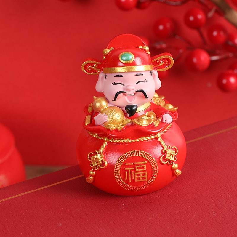 五福财神汽车摆件新年礼物车载内饰摆件钱袋五福临门桌面蛋糕摆件