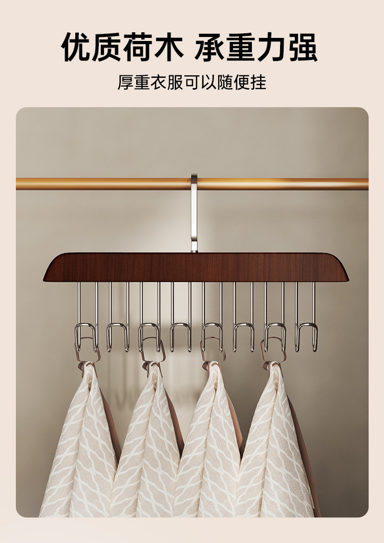 8 후크 솔리드 우드 행거 다기능 조끼 속옷 슬링 후크 저장 인공물 Yixuan 로그 빈티지 옷걸이스토어 가기