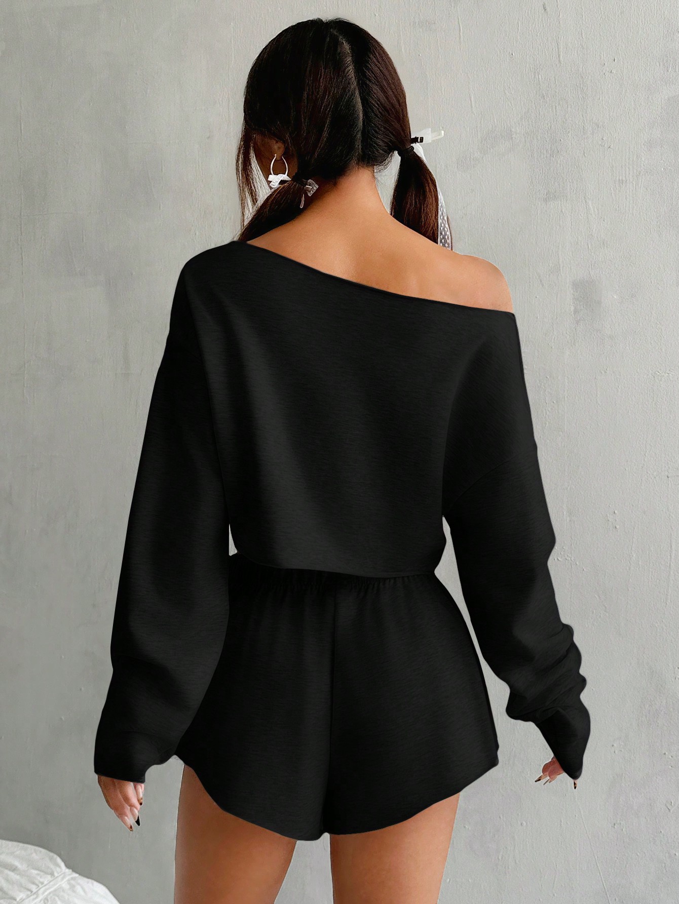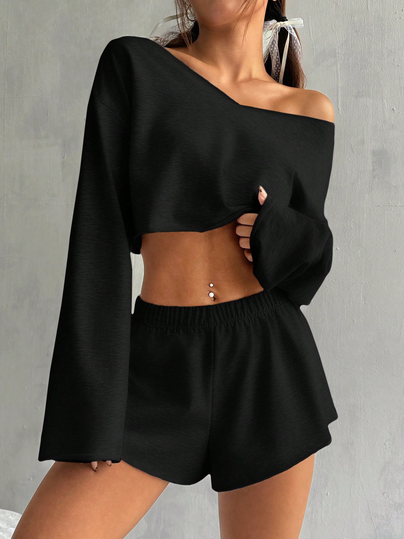 스팟 2025 유럽과 미국의 국경 여성 의류 가을, 겨울 대외 무역 아마존 유럽과 미국 의류 긴팔 탑 + 반바지 정장