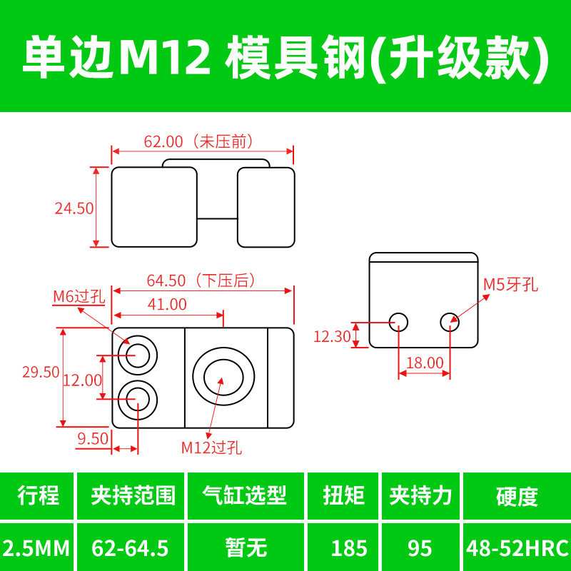 • M12 양방향 강철 부품 모델(경화 버전)