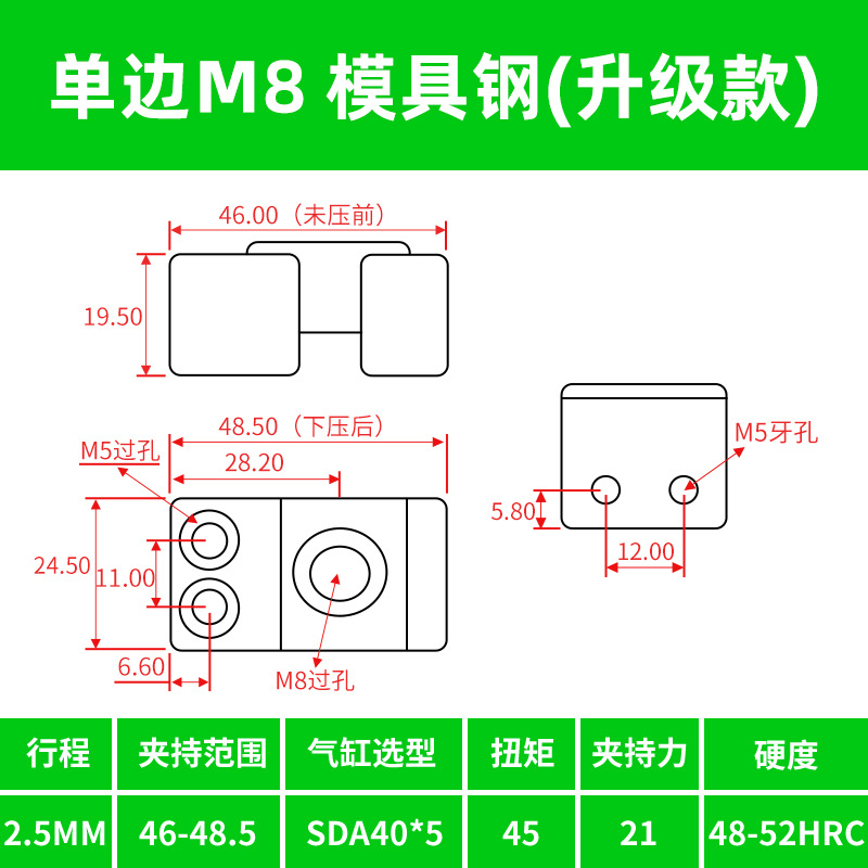 • M8 양방향 강철 부품 모델(경화 버전)