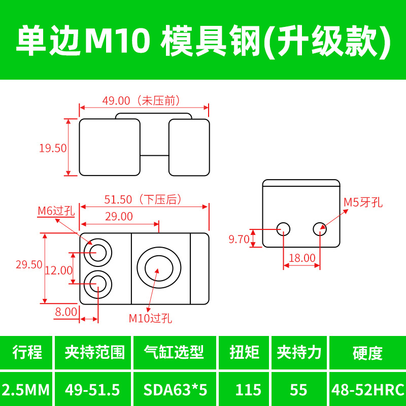 • M10 양방향 강철 부품 모델(경화 버전)