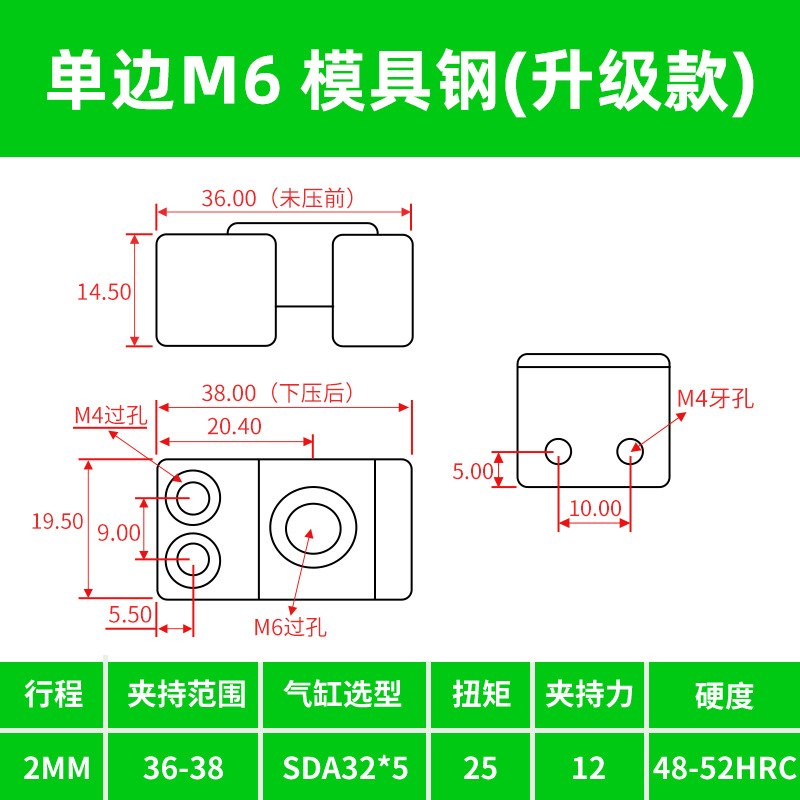 • M6 양방향 확장 강철 부품 모델(경화 버전)