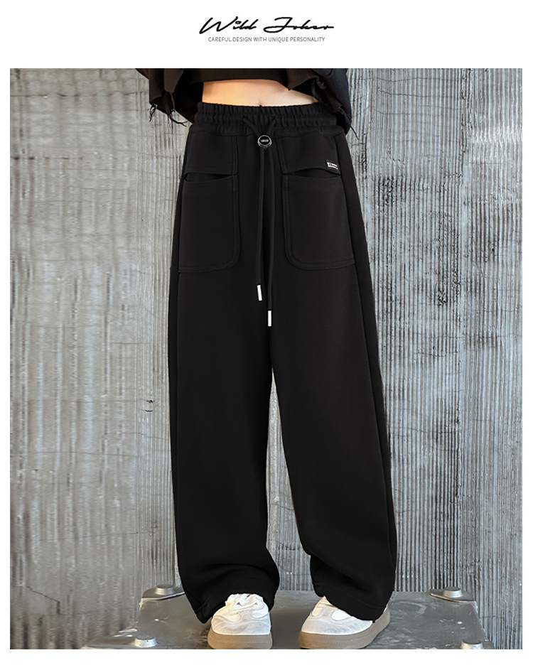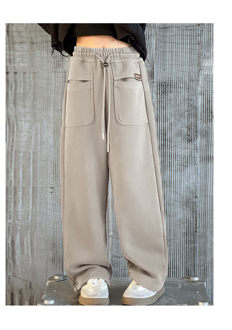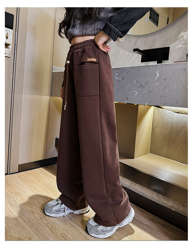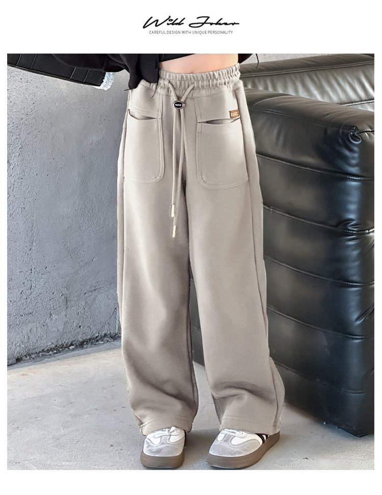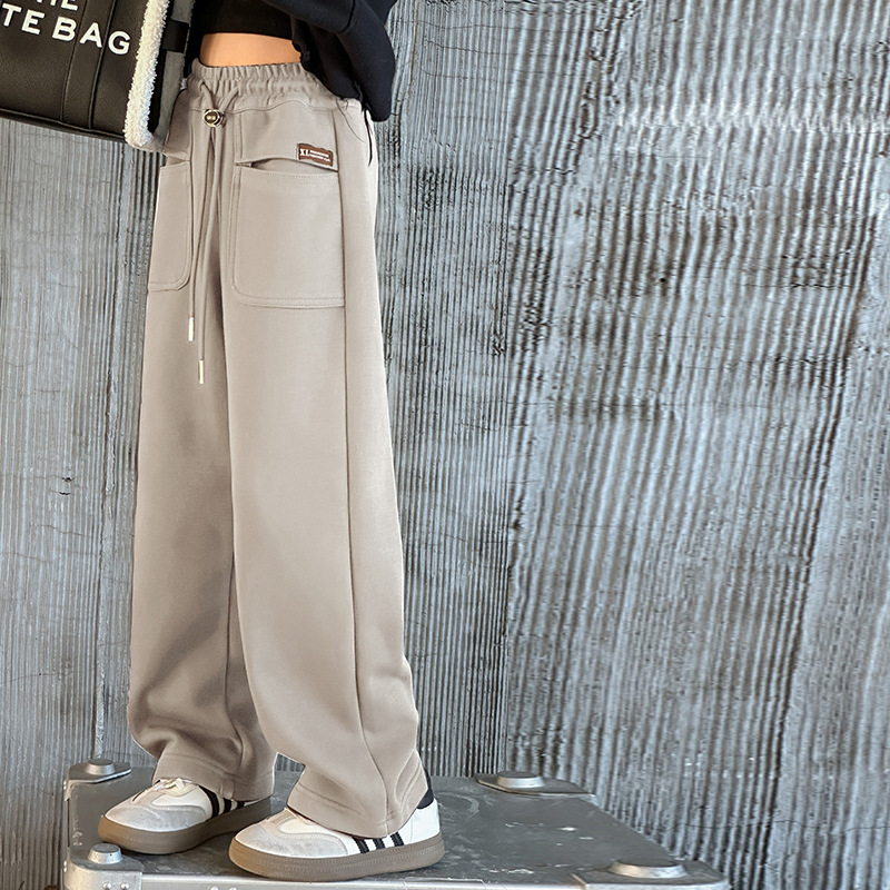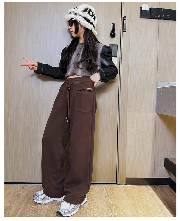 소녀 기모 바지 가을과 겨울 2024 새로운 겨울 착용 소녀의 겨울 좁은 버전 스트레이트 와이드 다리 어린이 캐주얼 바지