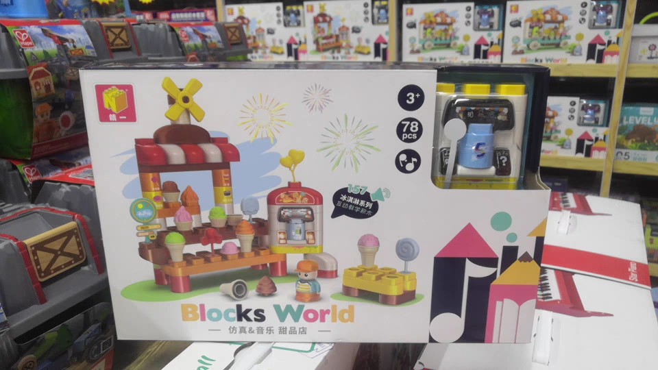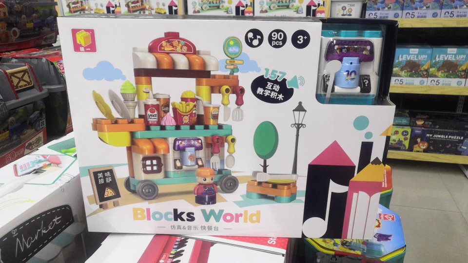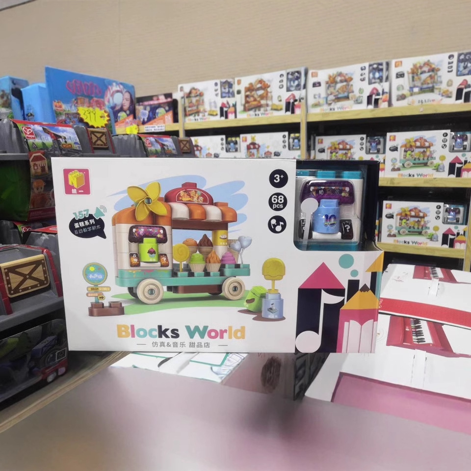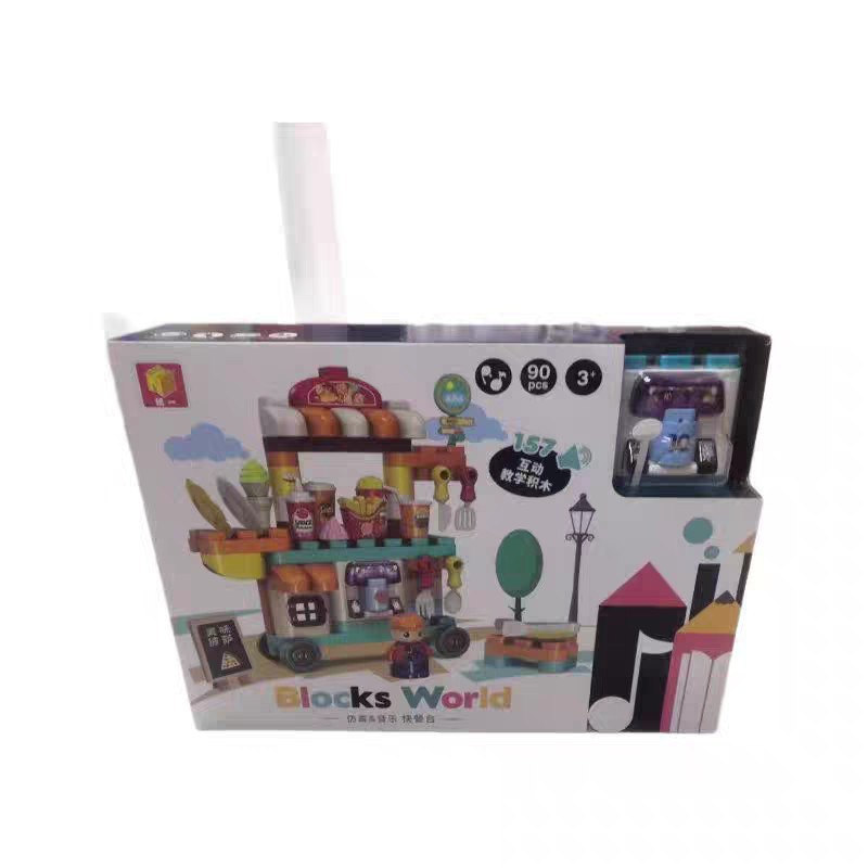 Jingyi 시뮬레이션 음악 패스트 푸드 테이블 디저트 숍 다양한 모양과 스타일의 어린이 퍼즐 빌딩 블록 집 장난감스토어 가기